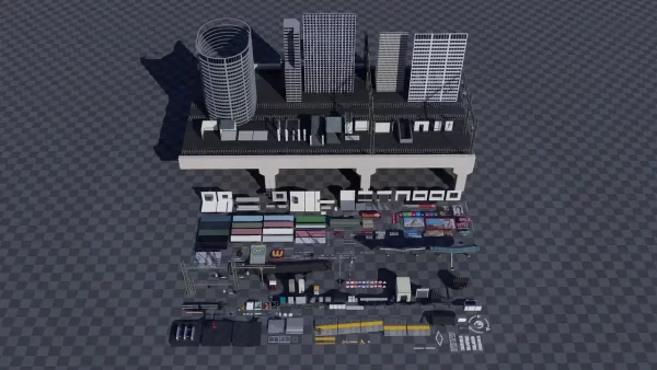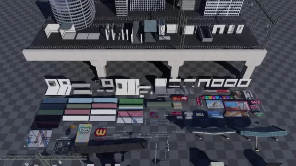 - 提供街道、火车站台、售票区三大独立场景模块,支持自由拼接摩天大楼、交通灯、广告牌等160+独特道具,快速构建高密度城市景观。