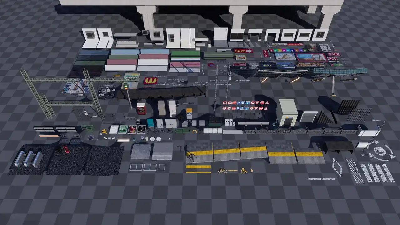 - 使用Spline蓝图快速生成街道护栏、站台公告板;