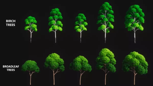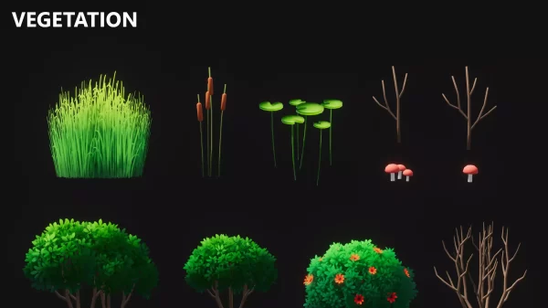 - 多样化自然模型:涵盖多种树木、草地、灌木丛、岩石和悬崖,满足多样化场景需求。