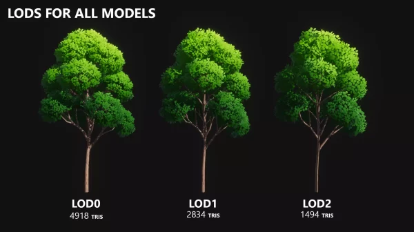 - LOD优化:所有模型均支持LOD(Level of Detail),确保高性能表现。