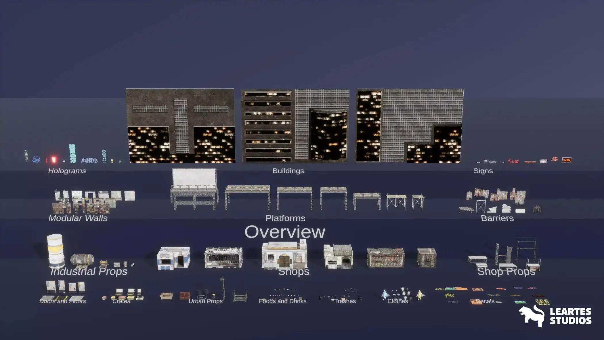 - 230个独立网格模型,包括人行道(Sidewalks)、墙体(Walls)、窗户(Windows)、门(Doors)、屋顶(Roofs)等建筑结构;