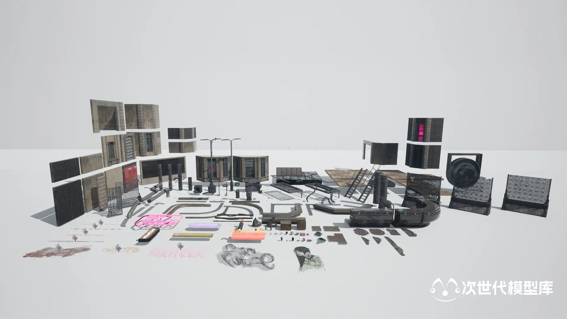 超高品质的暗黑风格的赛博朋克脏乱的后街场景模型资产。场景模型以赛博朋克风格为特色,展现了脏乱的后街氛围。采用模块化设计,使得资源之间可以轻松组合拼接,灵活应用于游戏开发中。所有资源均采用2K纹理,确保细节丰富且清晰。同时,场景模型还进行了光照贴图的烘焙,增强了场景的真实感和光影效果。