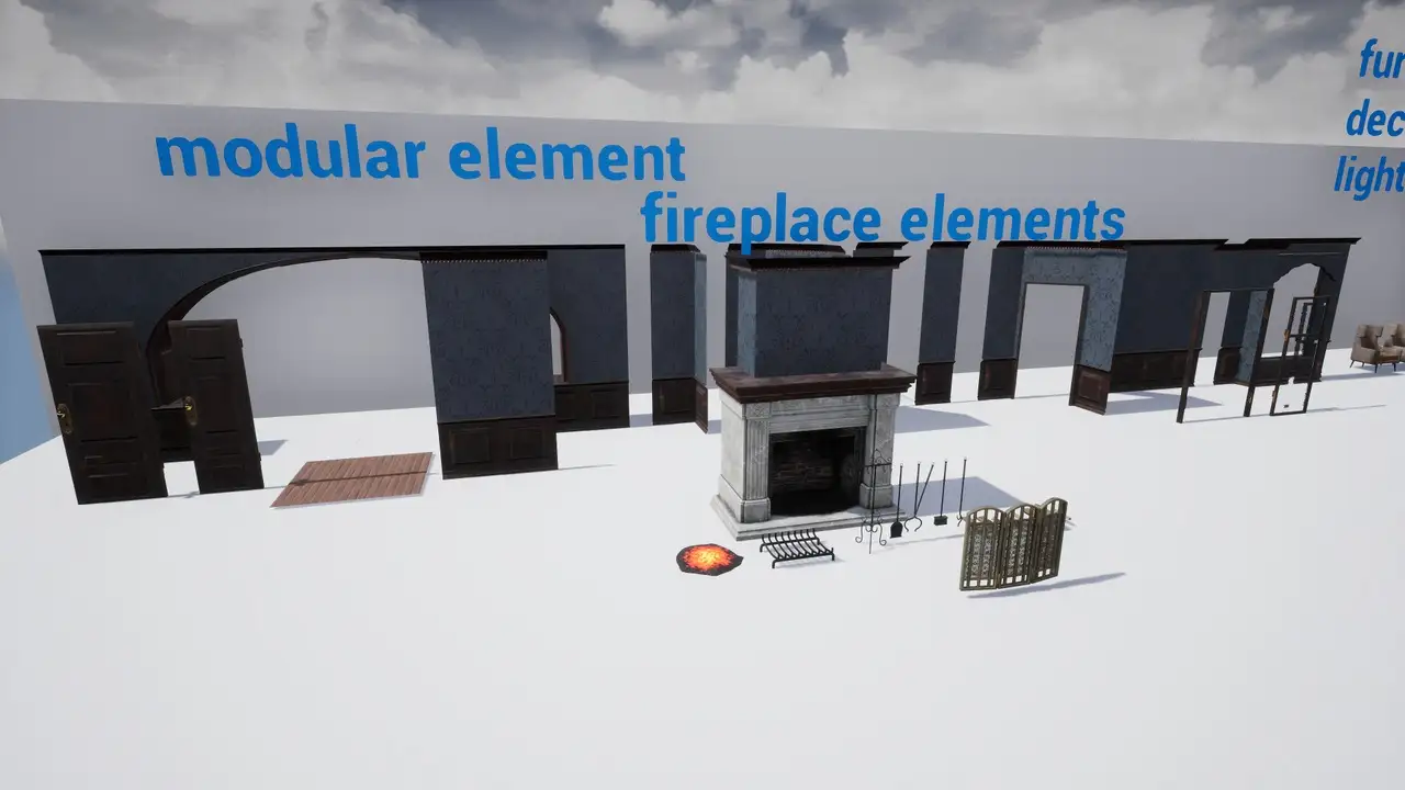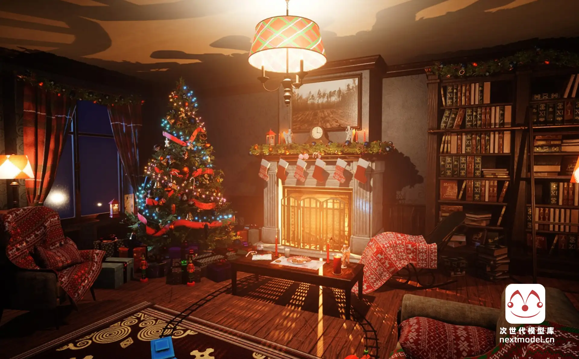 - PBR工作流:284张贴图构成完整PBR材质体系,覆盖Albedo、Normal、Roughness、Emissive等通道,尤其注重发光材质(如蜡烛、灯串、壁炉火光)的物理准确性。