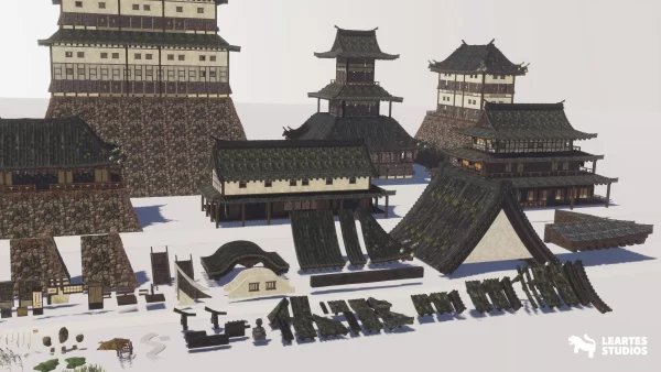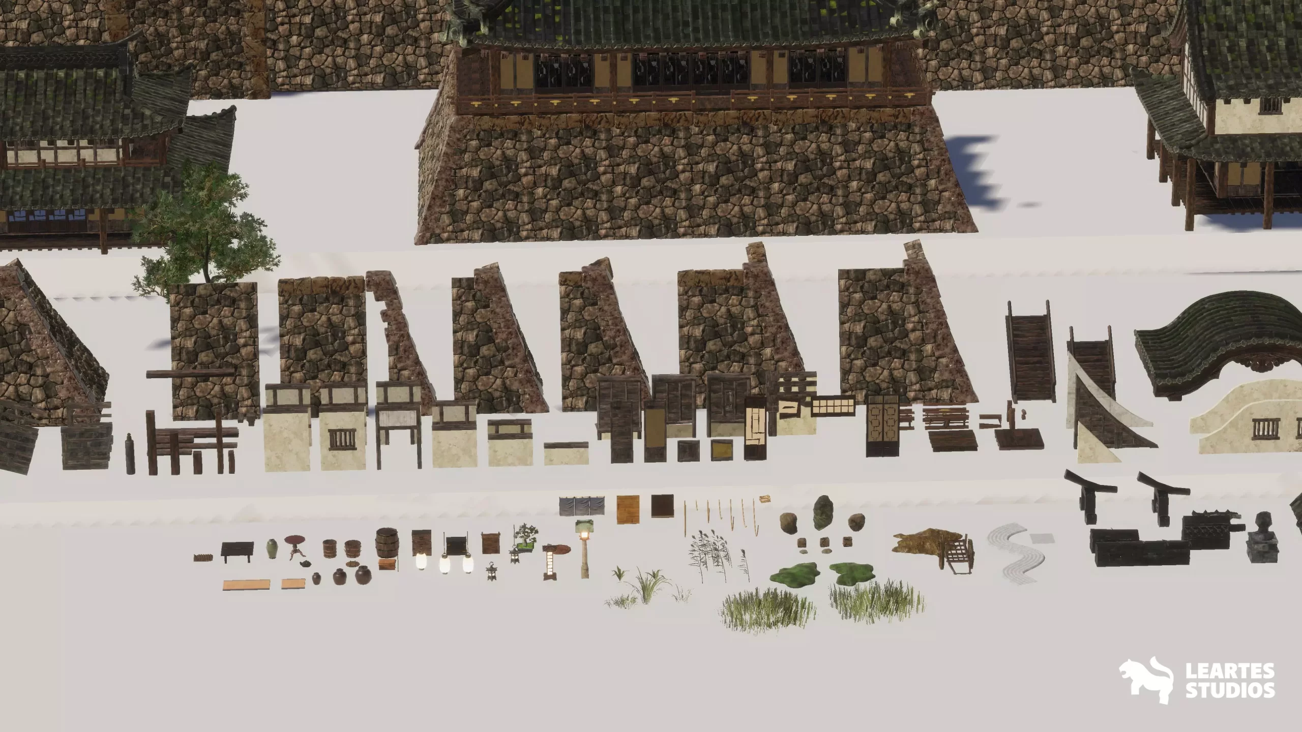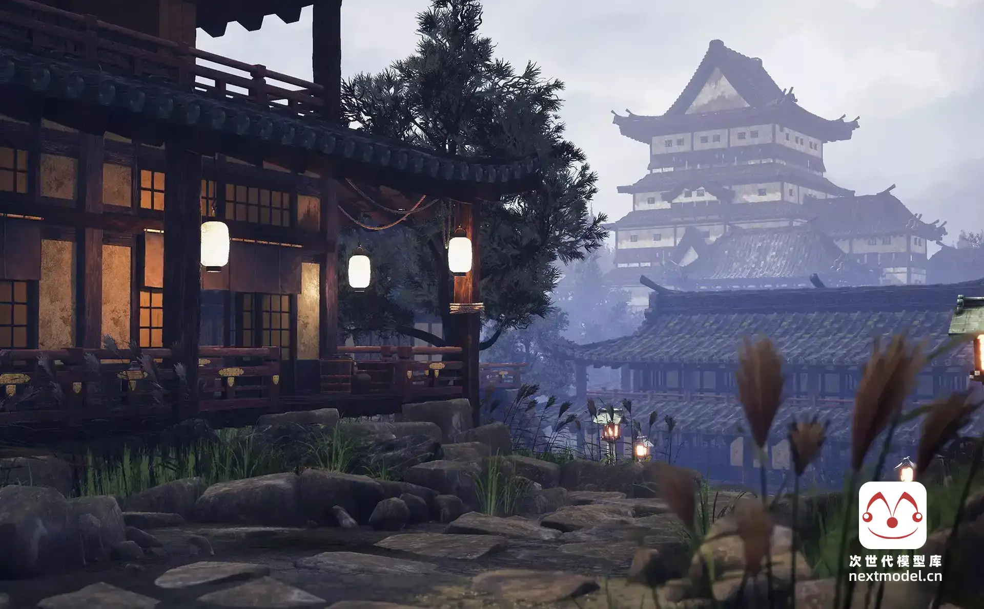 - 道具类:石灯笼、酒桶、盆栽、桥、樱花、砾石