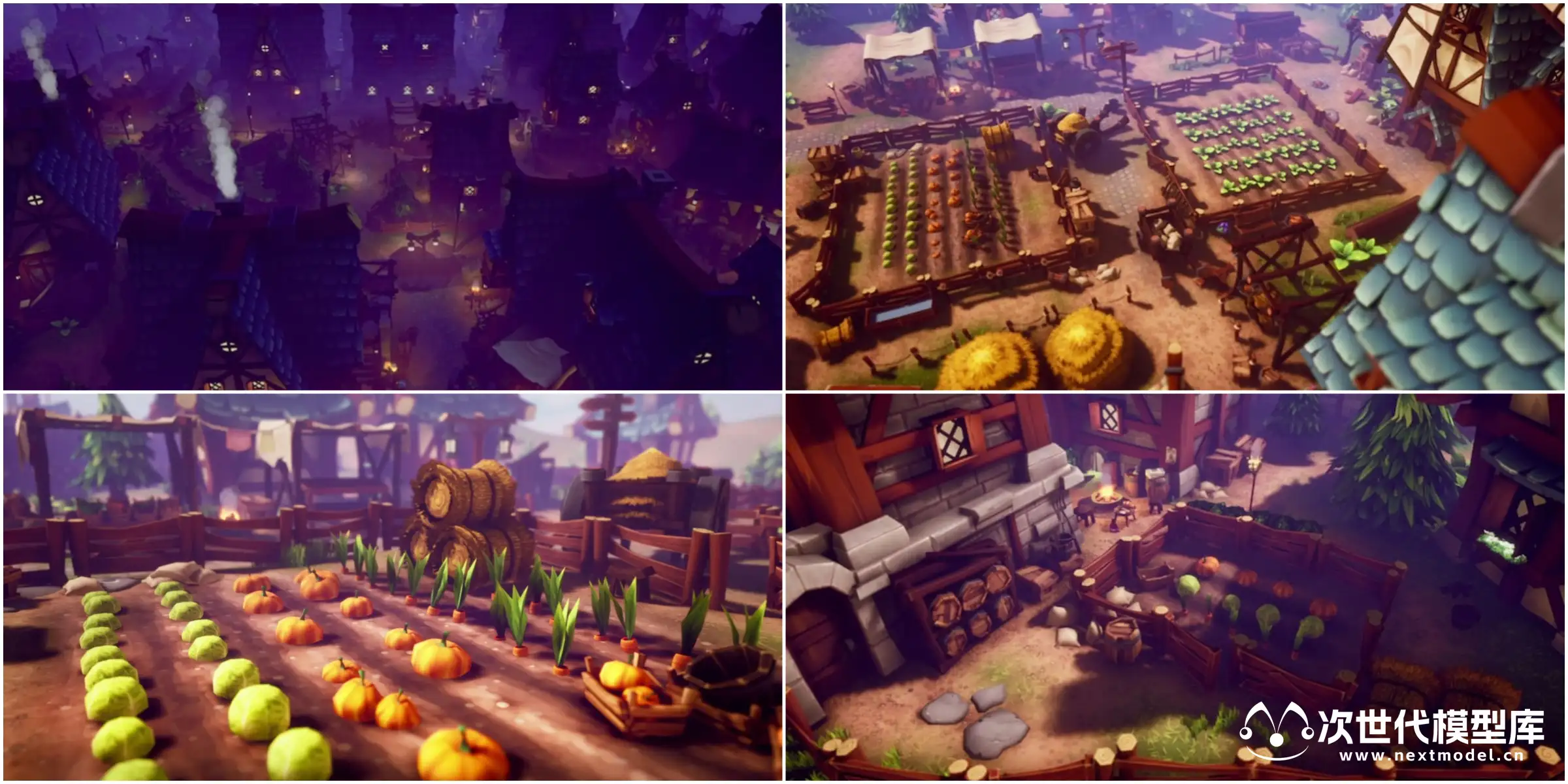 风格化的奇幻村庄包含400 多种独特的资产,可帮助您轻松建造自己的村庄。由于建筑资产的模块化,您可以创建各种各样的房屋,并使用模块化的墙壁、栅栏和尖刺为您的村庄建造防御设施。用各种道具装饰你的游戏,如家具、手推车、食物、旗帜等等。通过放置树木、草、灌木和风格化的水,用风格化的自然资产为你的村庄增添趣味。