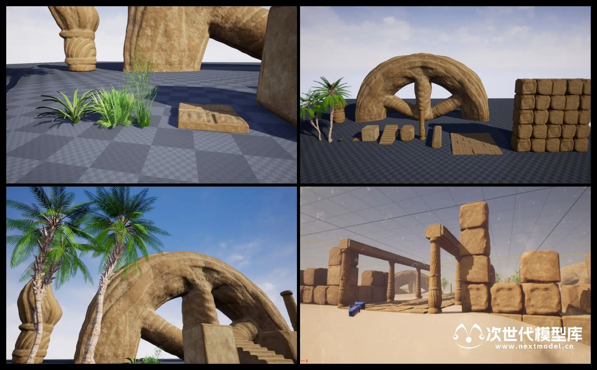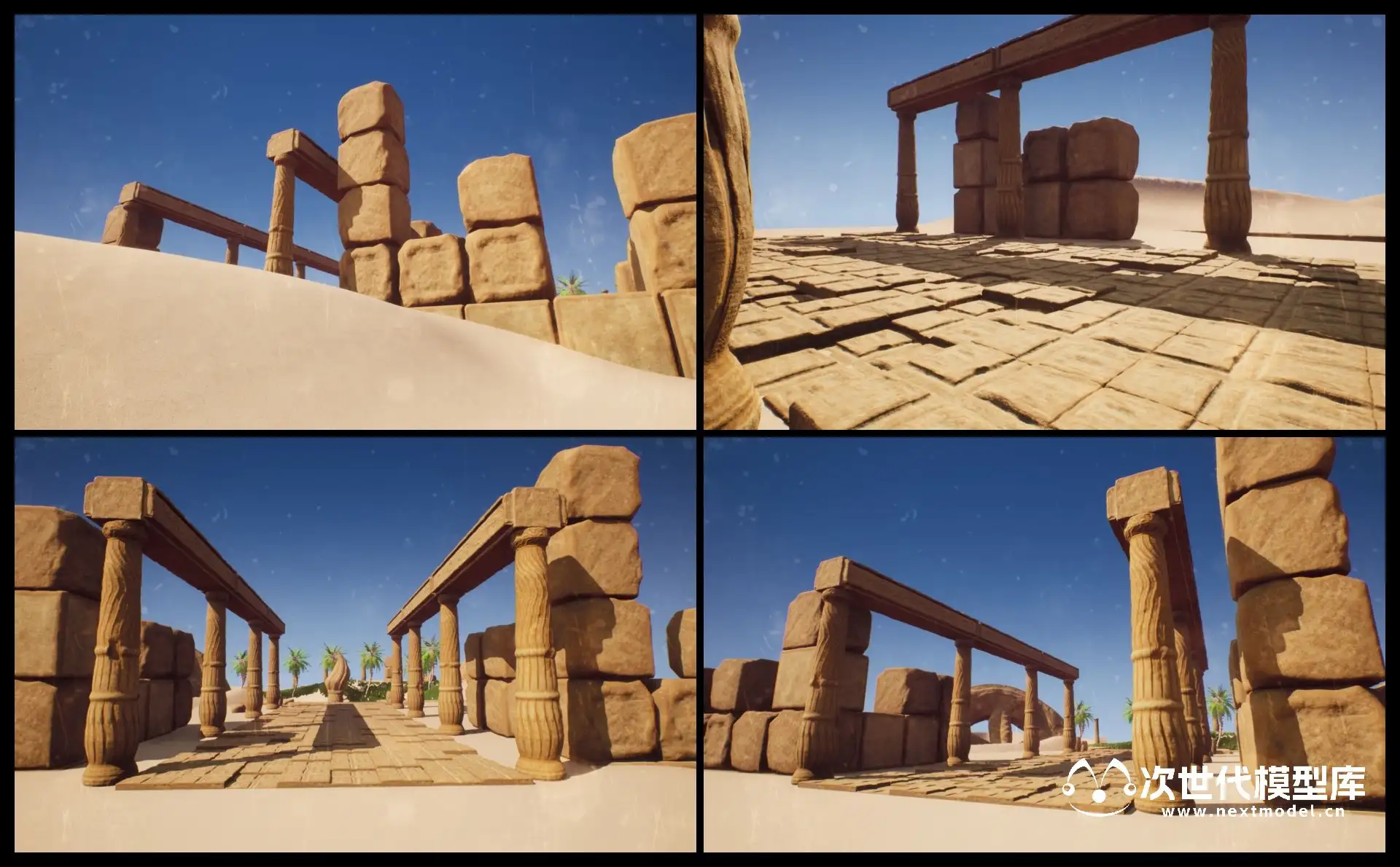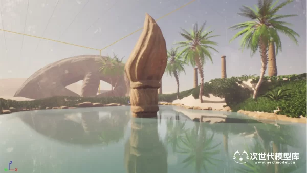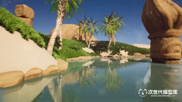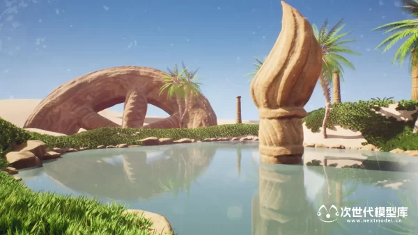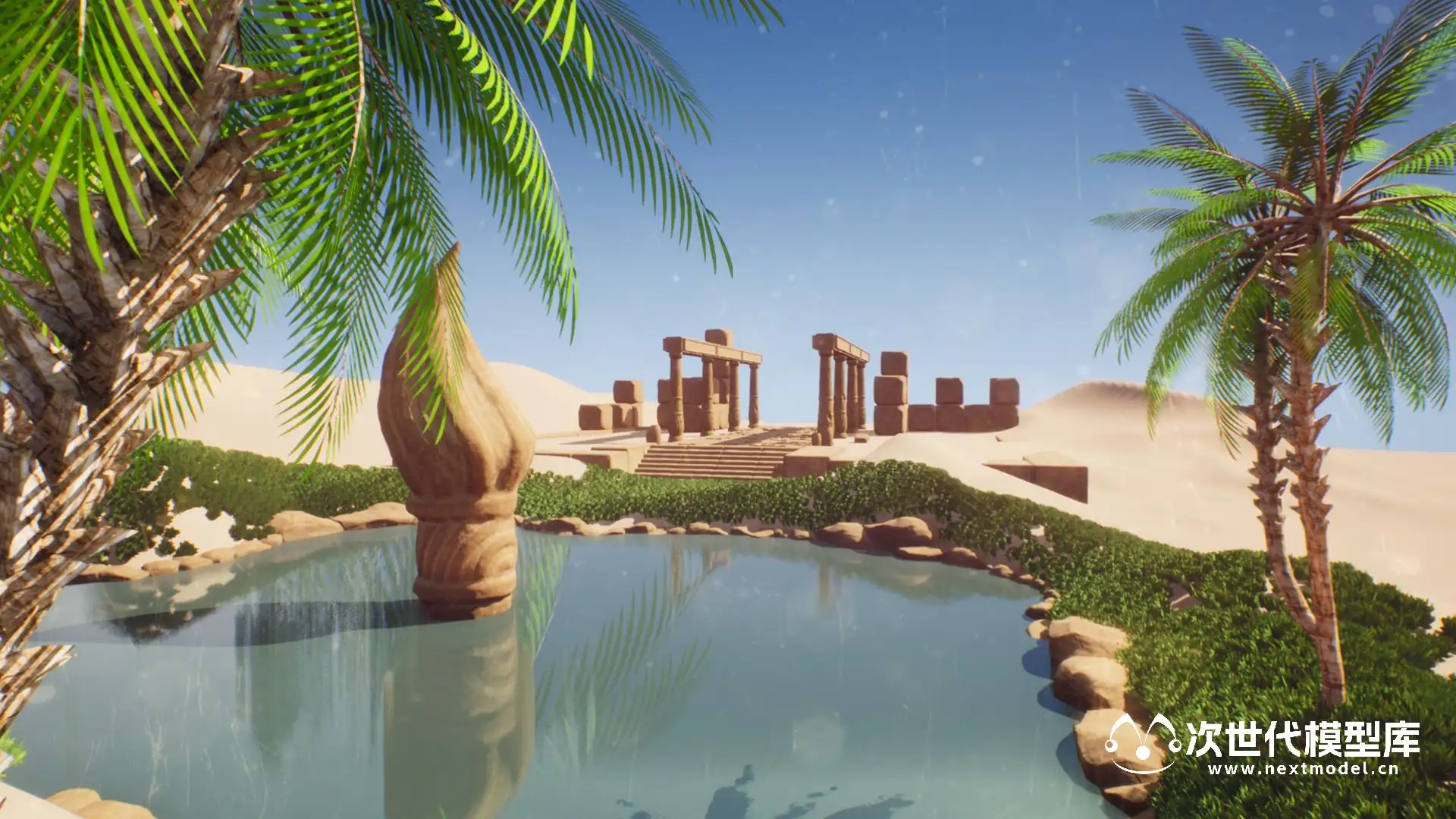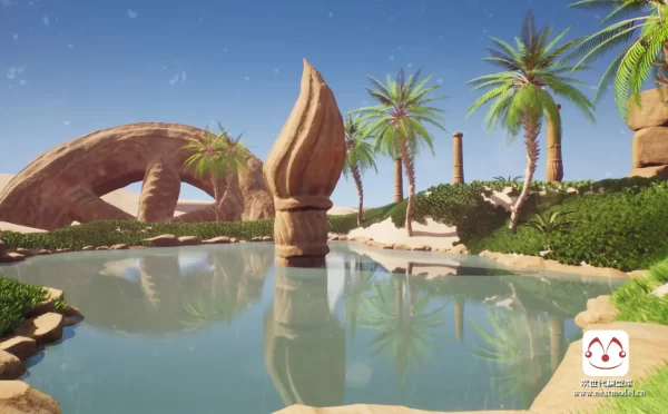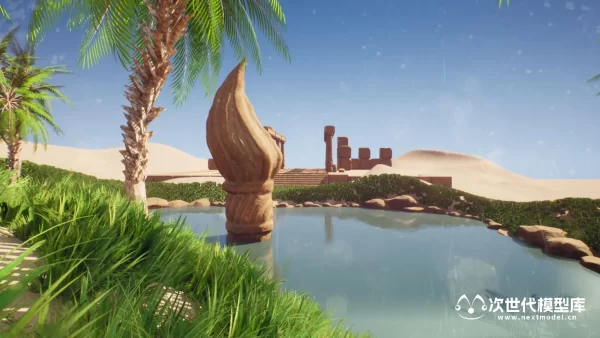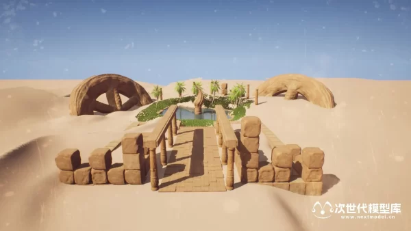 带有浓厚卡通风格效果的古代沙漠绿洲寺庙遗址场景,注重细节与逼真。通过程序化的平铺系统,打造出独特的视觉体验。