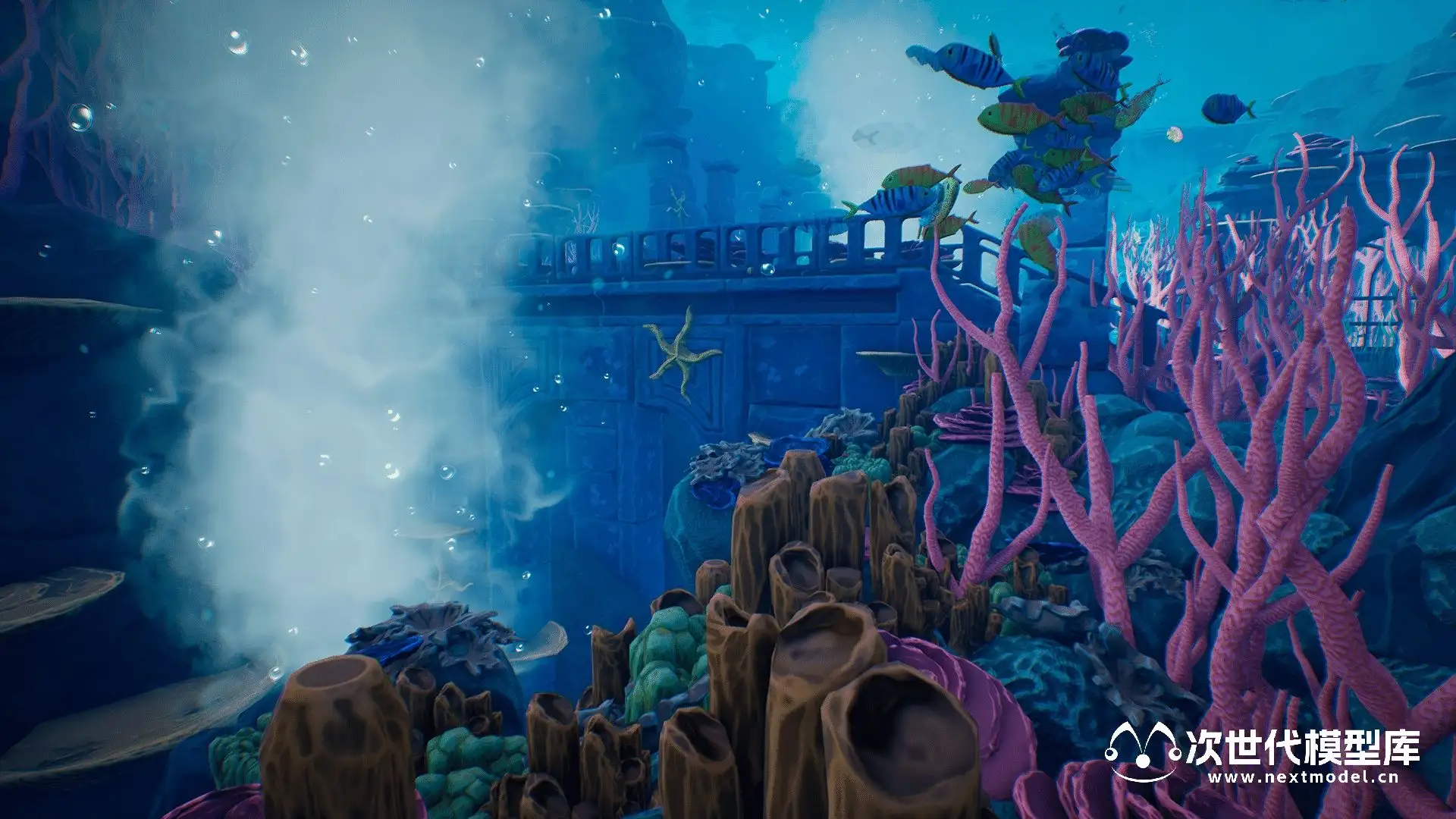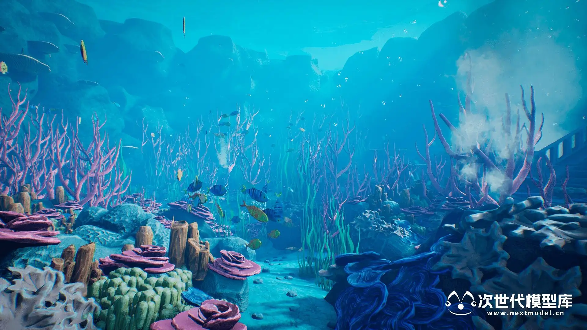 还附带多功能的海底地形材质,可实现两层混合,让您能够丰富地形细节,创造出完全独特的地图。此外,还有独特的水下视觉效果,包括喷泉、气泡和多种鱼群,为海底世界增添生动的氛围。