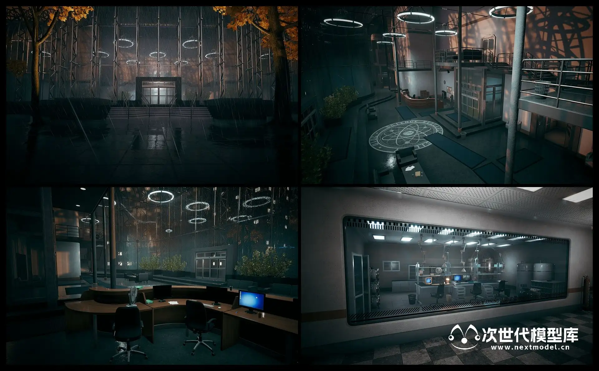 未来的科幻大型科学实验室大楼,该场景内蕴含建筑本身及其内部结构。内部细节涵盖实验室和办公室等资源,总计448个资产。一个涵盖一切的科学实验室场景,拥有以下特点: