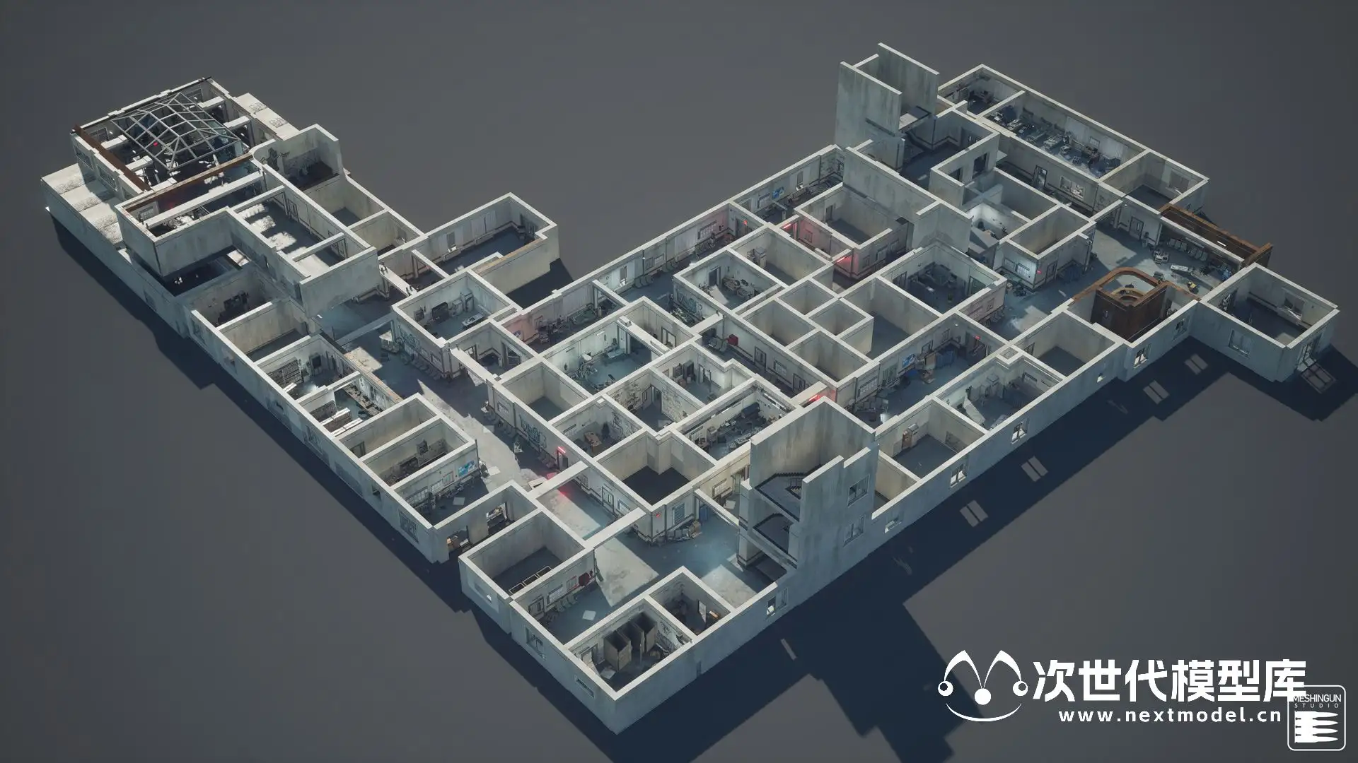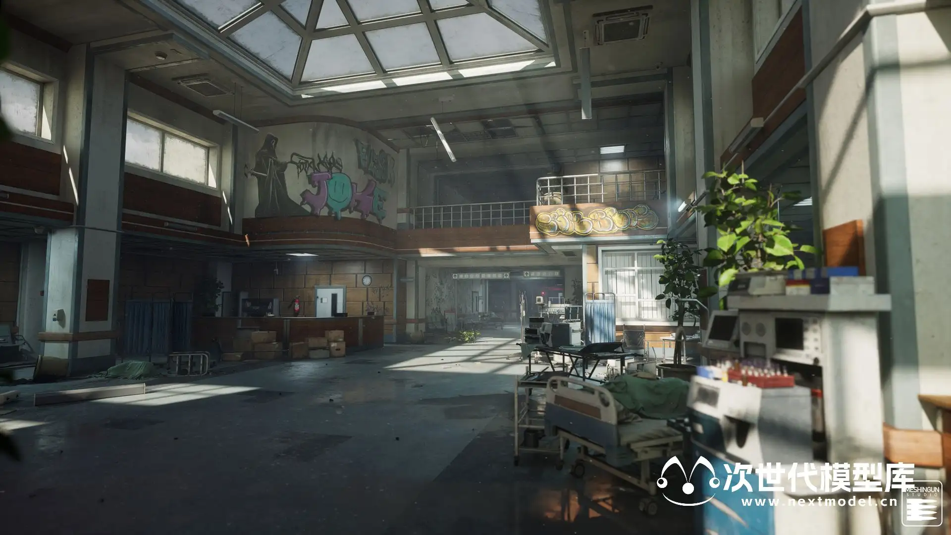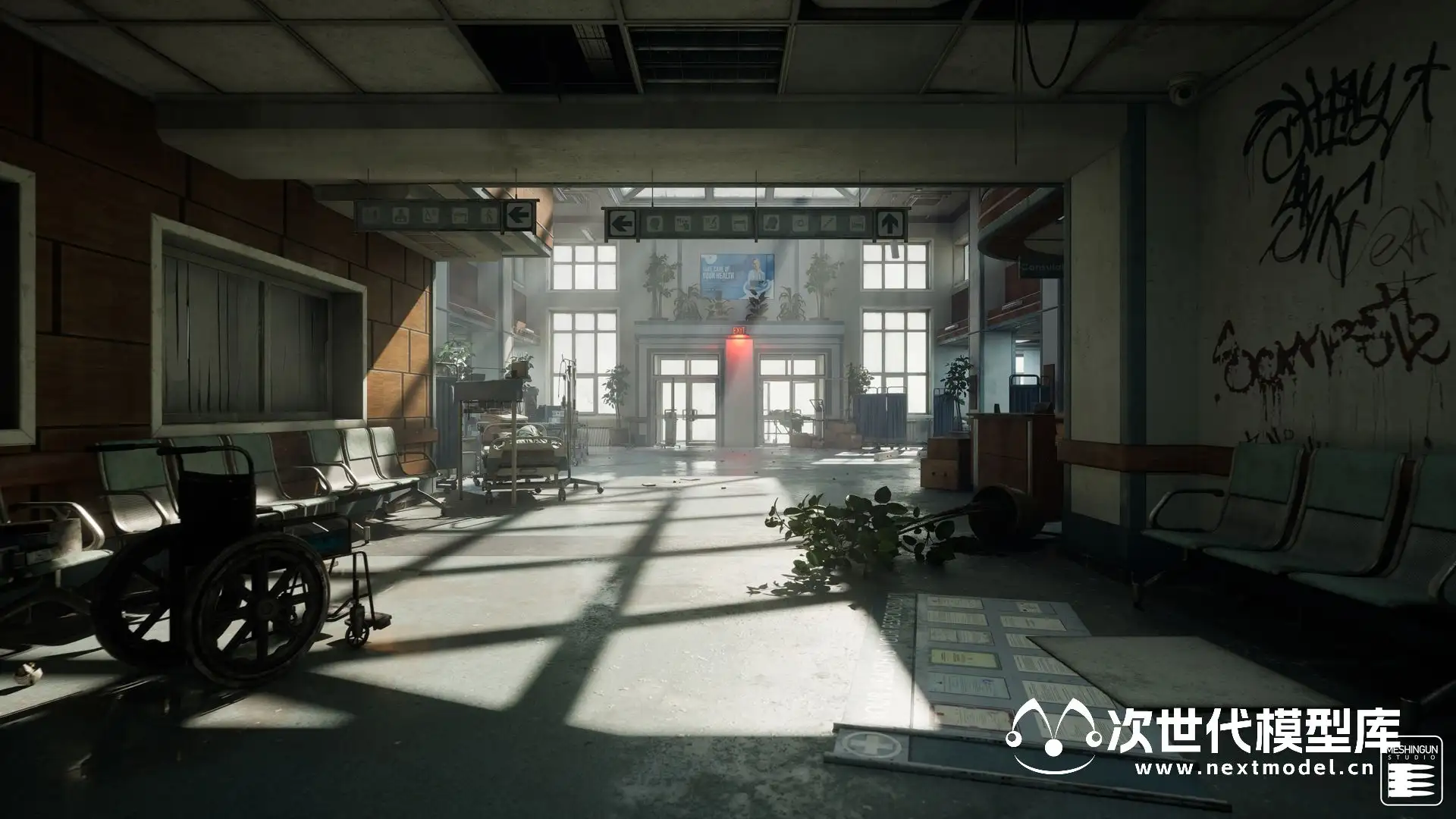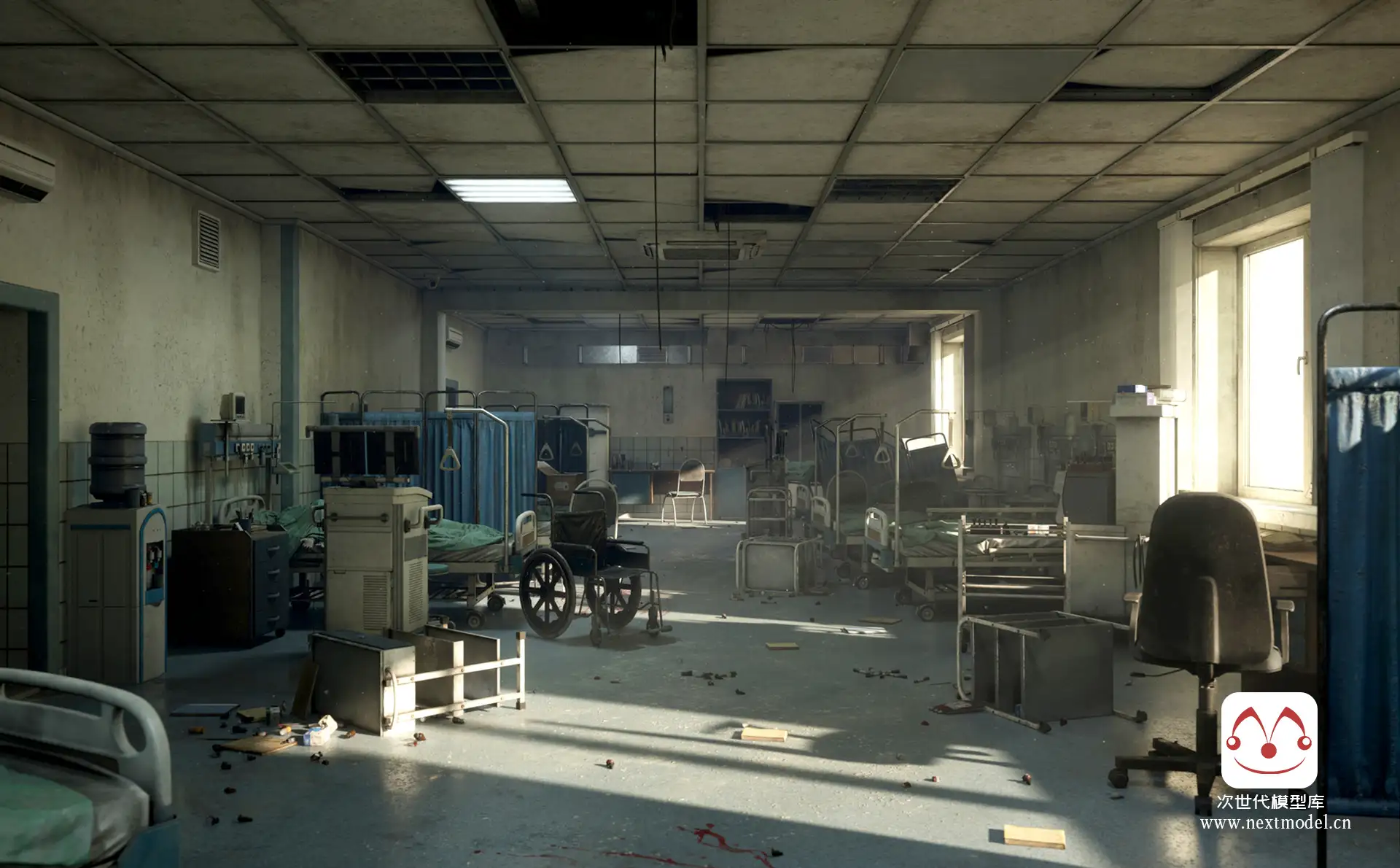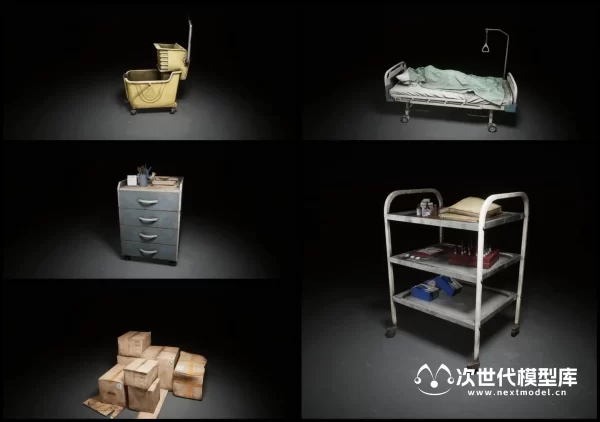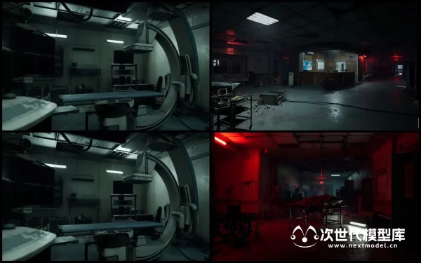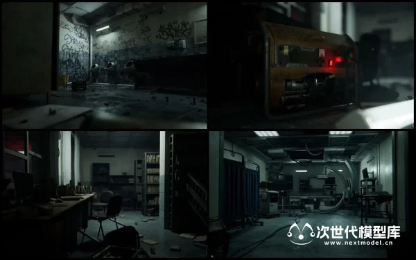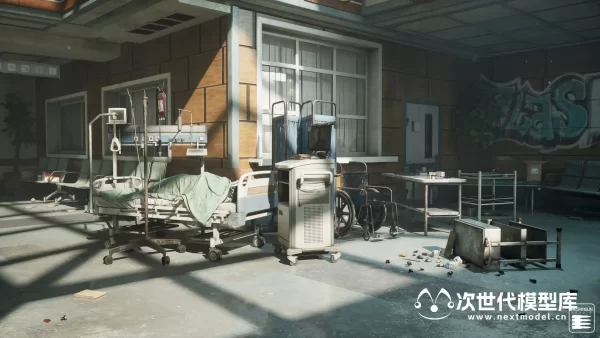 AAA级品质末日恐怖医院场景环境模型资产,拥有850个模型资产和预制体,大量的可修改性和可定制性以及方便的蓝图、贴花和工具。包含大堂、浴室、重症监护病房、图书馆等场景,每个场景均使用模块化设计,细节上包括道具,如桌子、椅子、植物、医疗设备、窗帘、冰箱、发电机等等。模块化建筑部件,如墙壁、装饰品、屋顶、大门、天花板、弧形等。各种贴花 -> 溅血、灰尘、涂鸦,道具模板:包括组装医疗设备、托盘、冰箱、拼装桌、书架、置物架、护理台建筑预制件等