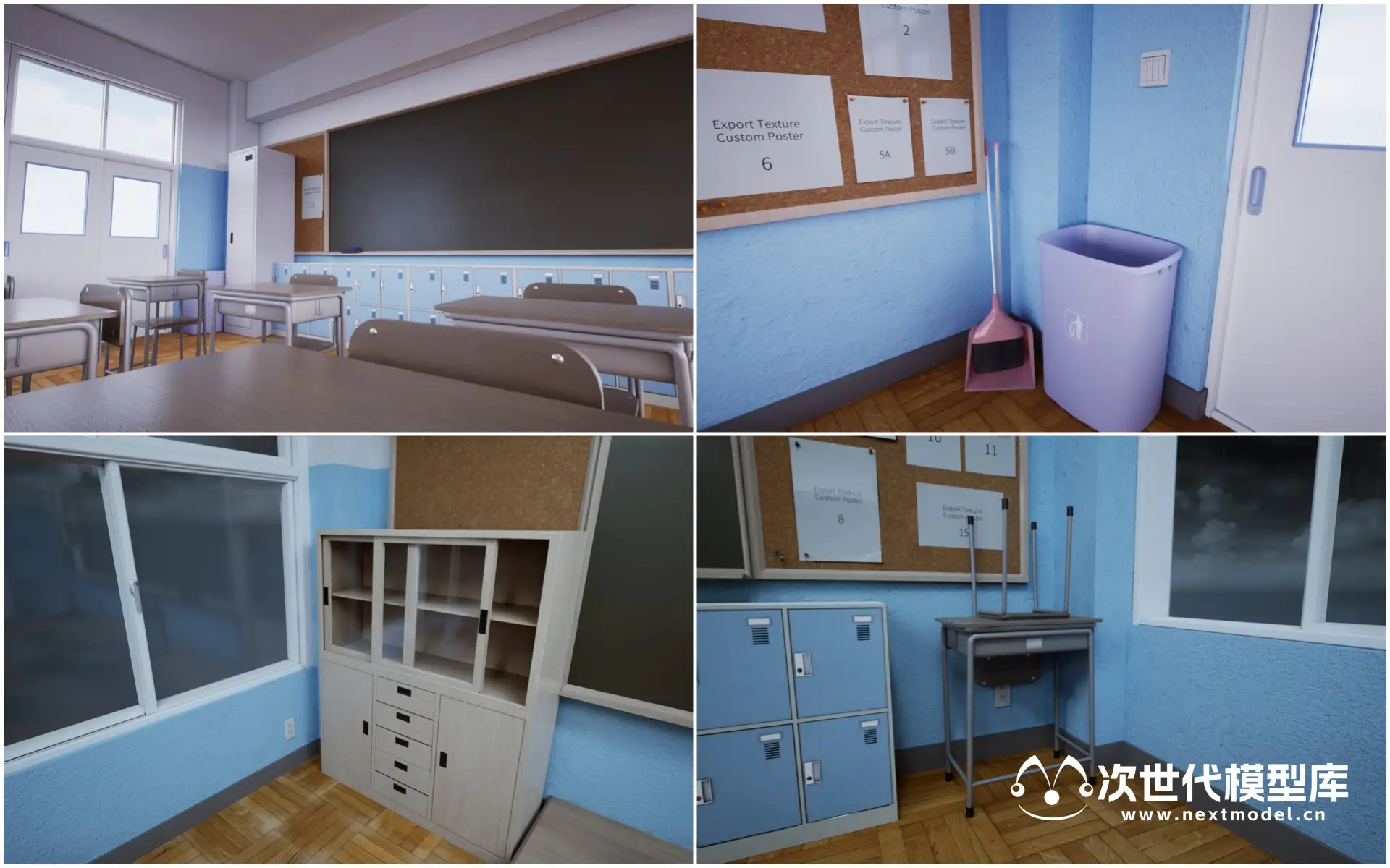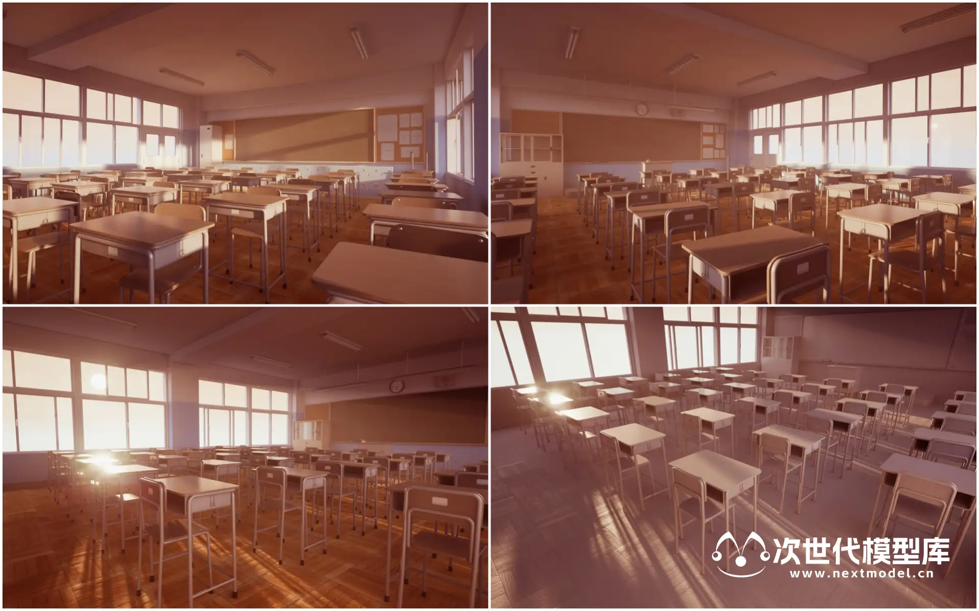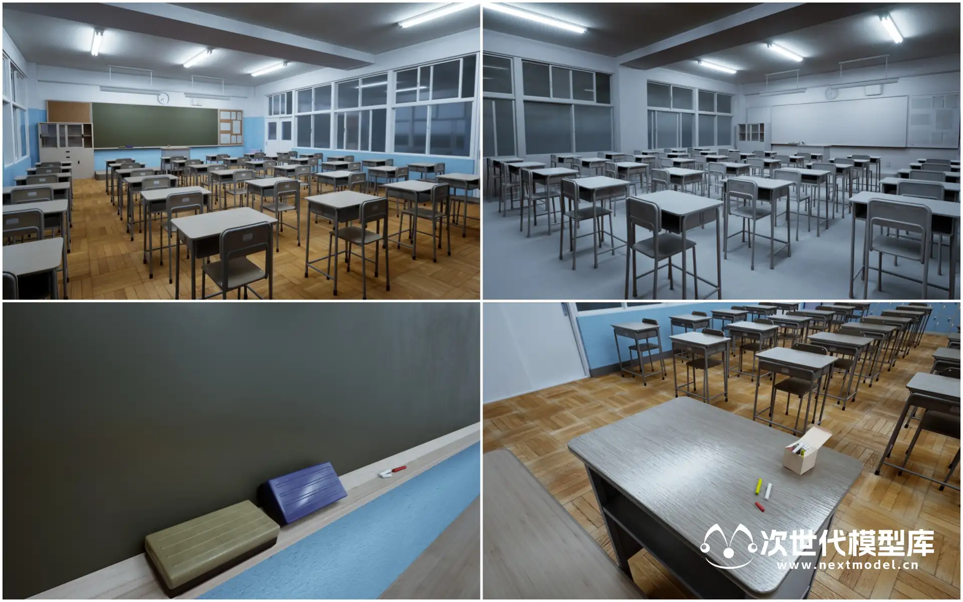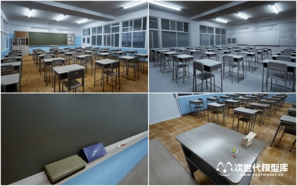 一组有非常高质量的学校教室场景模型资源。拥有3组不同时间段的教室场景渲染效果,包白天场景、黄昏场景、夜晚场景。每个时间段都有非常高的渲染效果。 技术参数: 资产体积:650mb 纹理贴图数量:49 纹理贴图尺寸:1024 * 1024,2048 * 2048,4096 * 4096 LOD:无 碰撞体:包含 格式:UE资源包 支出UE版本:UE4.21 - 4.25