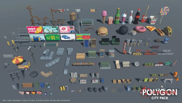 一款低多边形资源包,包含人物、建筑、道具、车辆、场景资源,可制作城市题材的多边形风格游戏。该资源包中包含 331 项资源,多种纹理颜色可供选择,支持通用渲染管道 (URP) 技术参数 资产体积:16MB 纹理尺寸:1024 网格数:348 纹理数量:22 资源格式:Unity资源包 资源版本:POLYGON - City Pack v1.3 支持Unity版本:Unity 2017.1 或更高、支持URP