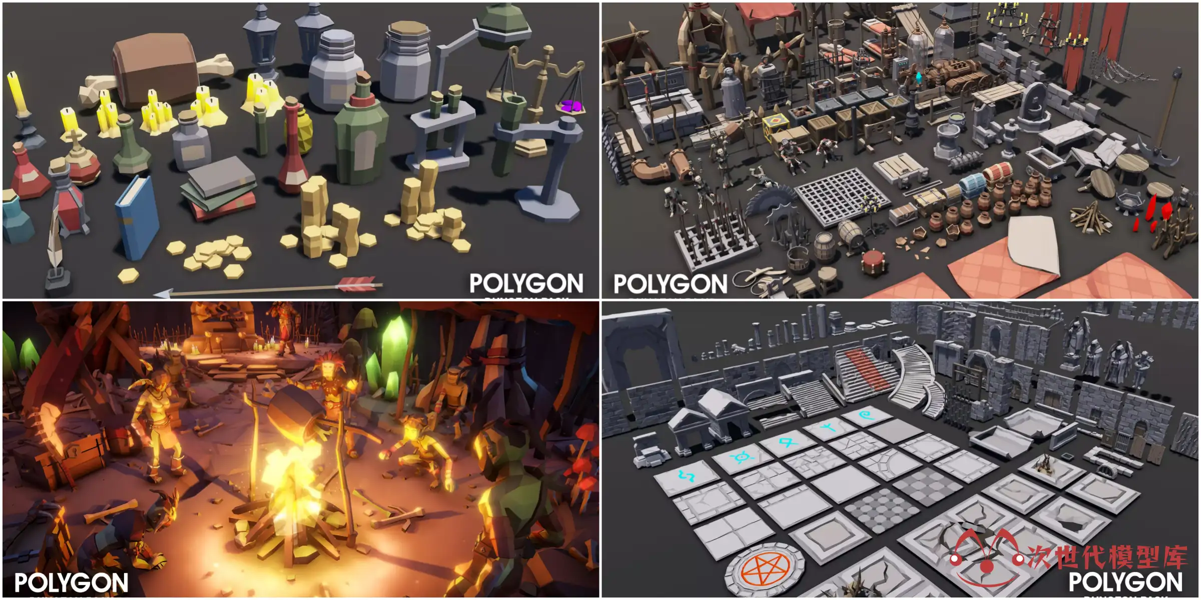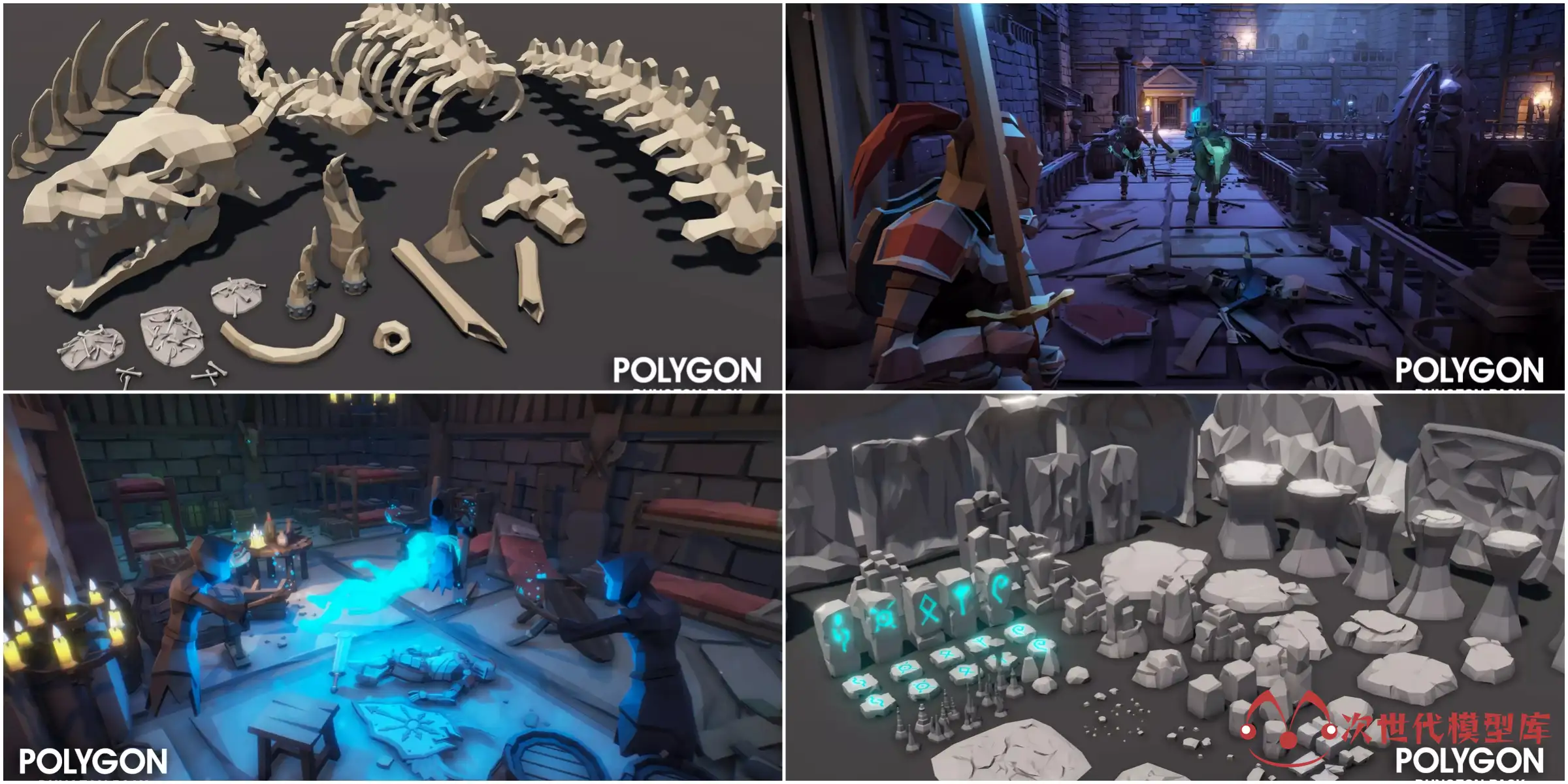 一款史诗级 Low Poly 资源包,包含人物、道具、武器和环境资源,供您制作幻想主题的多边形风格游戏。模块部分可以很轻松地以各种方式组合,包括一个大型演示场景。包括经过优化的地砖和墙砖,带有烘焙法线贴图。 技术参数 资产体积:43MB 资源格式:Unity资源包 资源版本:POLYGON - Dungeons Pack v1.4 支持Unity版本:Unity 2017.1.0或更高