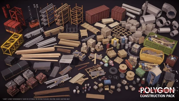 一款低多边形资源包,包括建筑物、角色、道具、工具和环境资源,以创建建筑主题的低多边形风格游戏。这一资源包中包含超过 550 个精细的预制件。 技术参数 资产体积:38MB 碰撞:是 材质数量:16 纹理尺寸:4096、512 纹理数量:16 资源格式:Unity资源包 资源版本:POLYGON - Construction Pack v1.0 支持Unity版本:2017.4.38或更高、支持URP