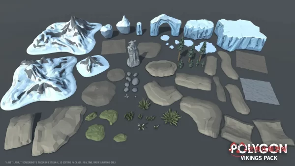 角色、建筑物、道具、物品和环境资产的低多边形资产包,用于创建基于幻想的多边形风格游戏。模块化部分很容易以各种组合方式拼凑在一起。包括一个大型演示场景!大多数资产的冬季版本都包含定制雪。