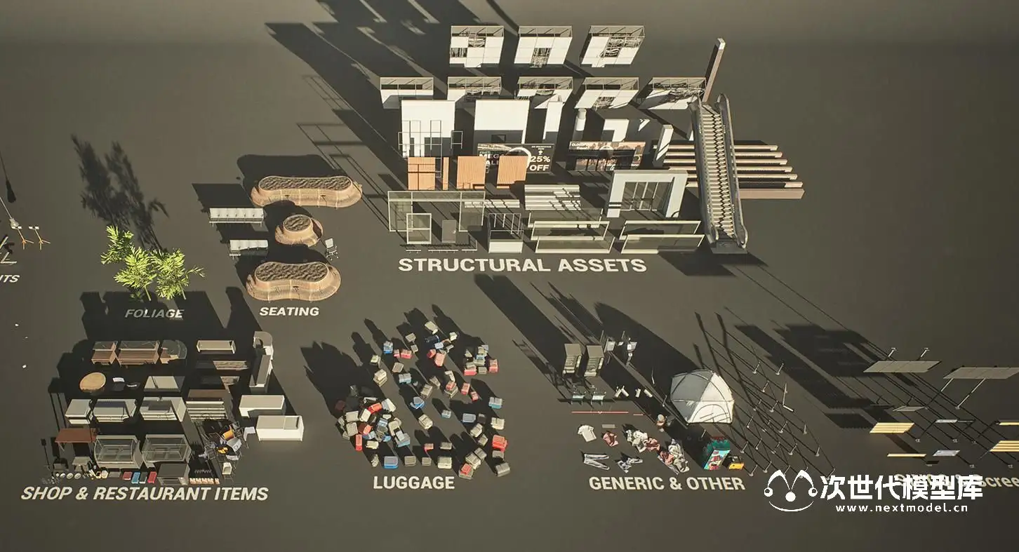 3A级游戏品质的民航机场航站楼室内场景环境。这个环境是专为游戏而设计的,采用了优化的纳米技术和LOD资产,4K纹理降低到合理的分辨率,并且采用了优化的光照资产。然而,由于资产的高质量,这个环境也可用于电影制作。这个环境适用于高端PC游戏和高端游戏主机。所有纹理均以PBR 4K分辨率提供,并在虚幻引擎中降低分辨率以获得合理的纹理分辨率和性能。