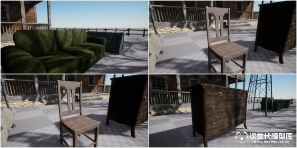 该包具有高度可定制的生存道具和小屋。所有材料都具有参数,可以轻松方便地自定义资产以适合您的项目。该包总共包含 22 个资源,小屋、沙发、梳妆台和床都有参数,允许您调整对象上显示的污垢量。