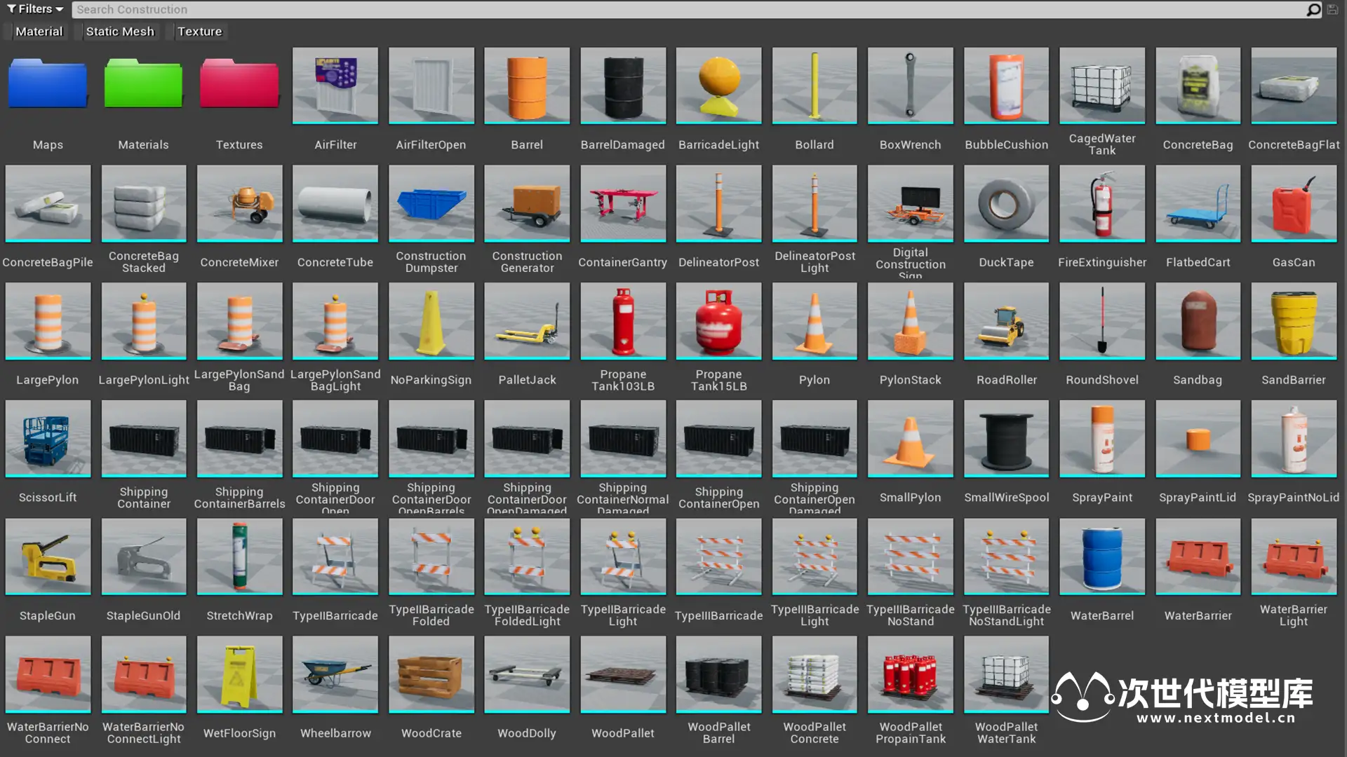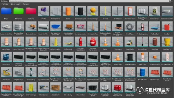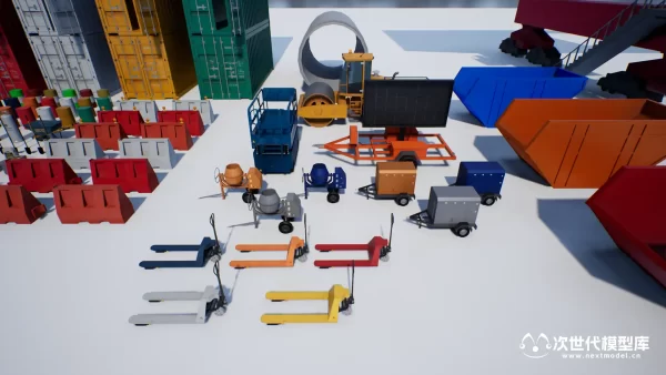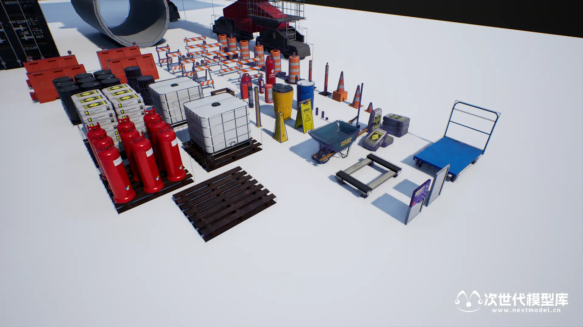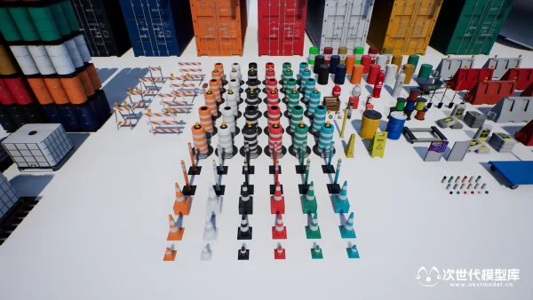 该包包含78 个建筑道具,道具包括锥形桶、集装箱、水马、压路机等。具有自定义碰撞和多颜色变体。该套件非常适合建筑或工业级环境。