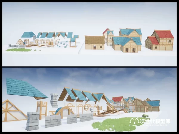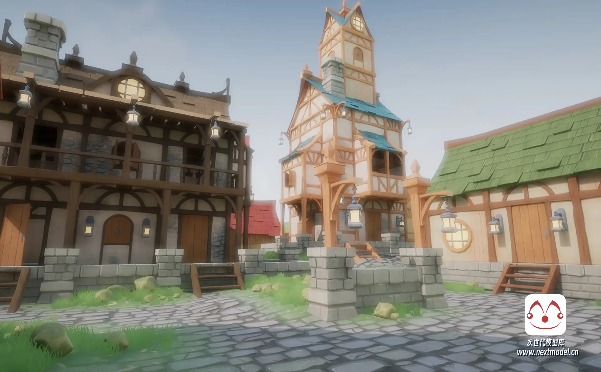 风格化的中世纪城镇模型资产,采用模块化的设计,可以帮助您创建奇幻世界。场景中包含各种建筑及建筑内部场景,模块化套装创建自己的房屋的多种方式,从小房子到大型塔楼!所有墙壁都可以进行顶点绘制,以露出下面的石头和木头材质。使用的大多数材质都是平铺纹理,可以轻松替换为任何其他纹理。
