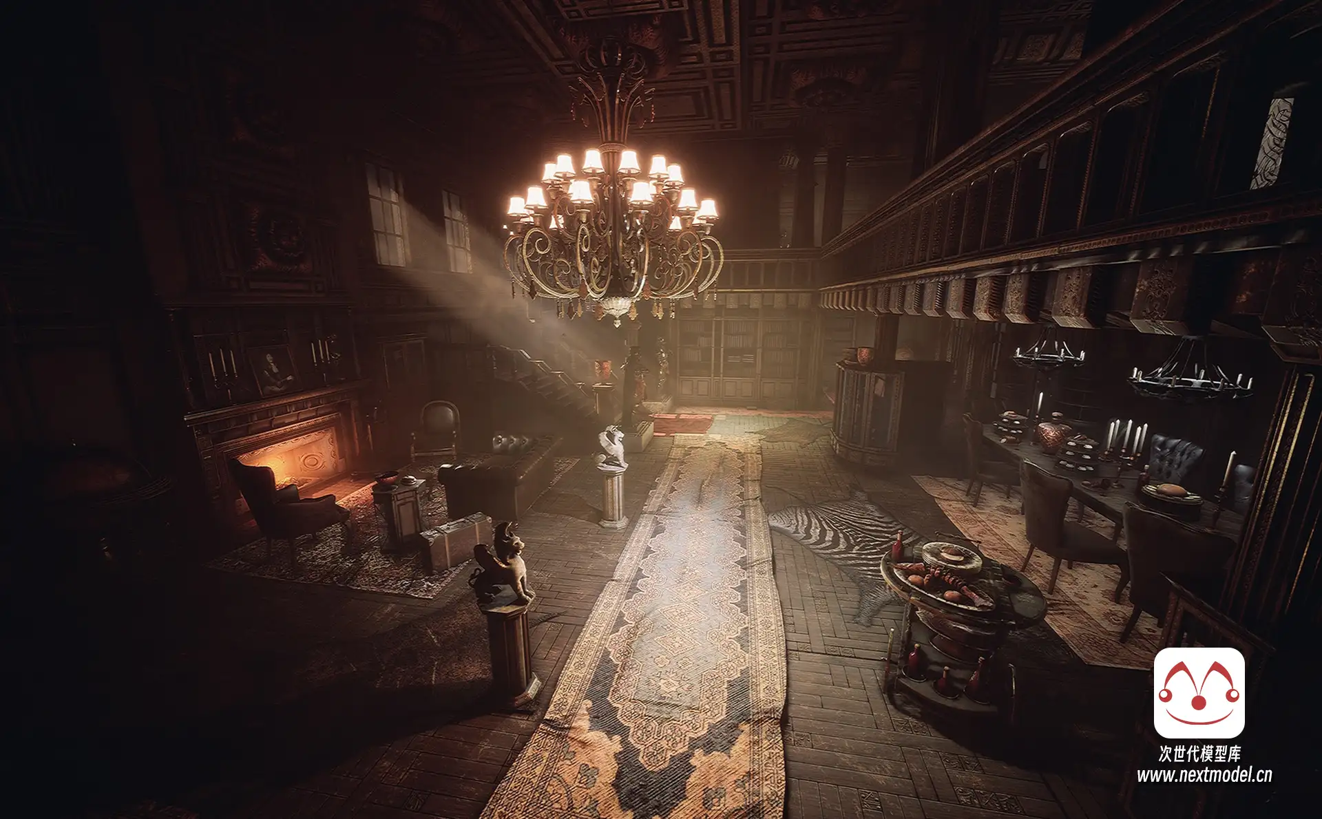超高品质的维多利亚时代的西卡大厦酒店(SICKA MANSION)室内场景环境模型包,采用模块化设计,拥有超过200个道具模型,每个模型均手工制作了用于光照贴图的第二套UV。每个模型具有超高精度的细节。道具模型包括:室内结构、餐桌、餐具、吊灯、沙发、凳子、椅子、柜子、书柜、铠甲雕像、墙面装饰画、地毯、壁灯、书桌等道具细节;