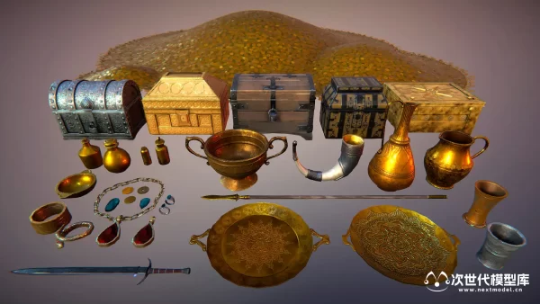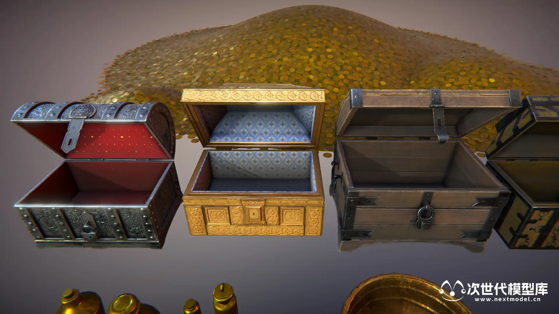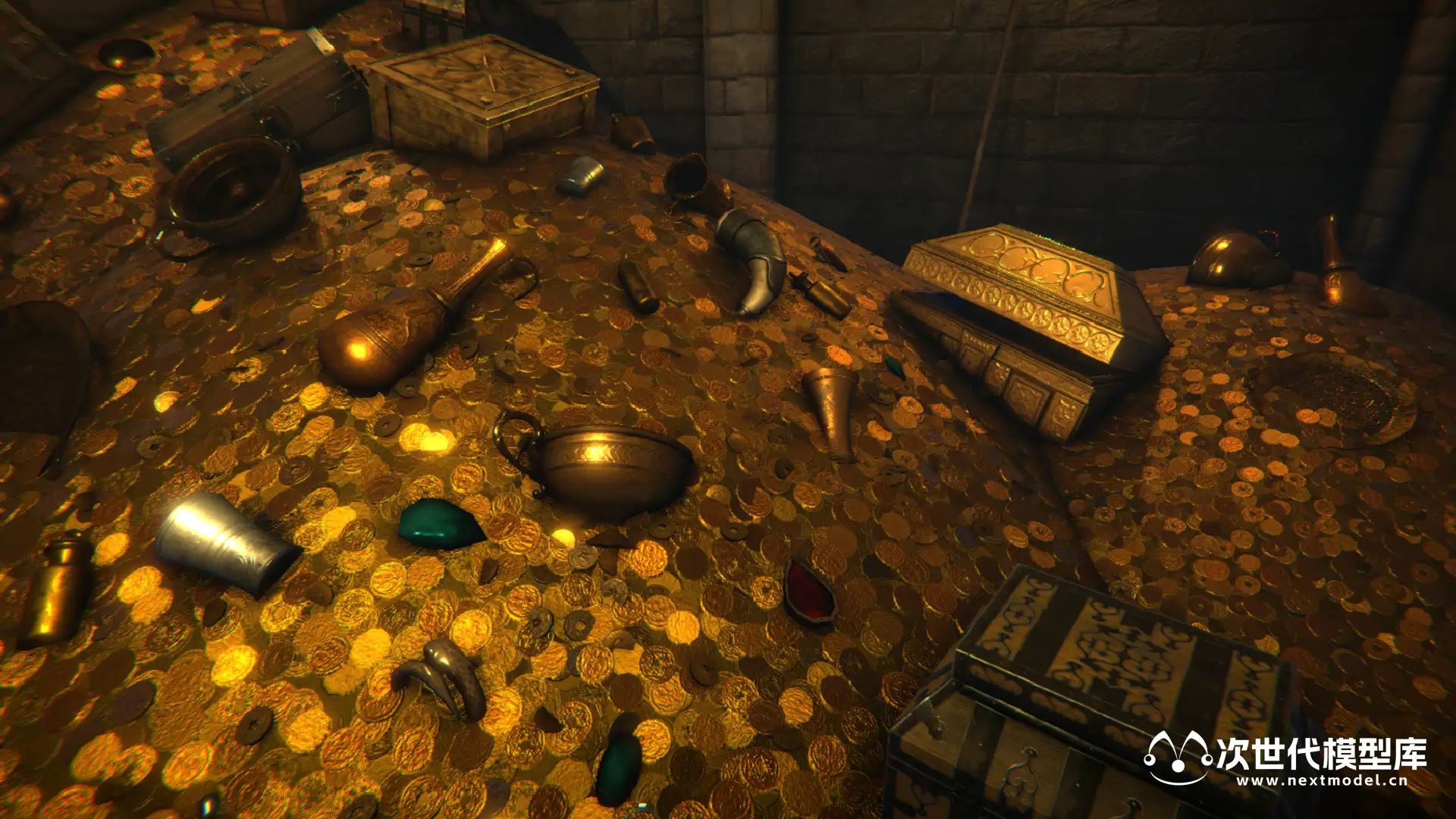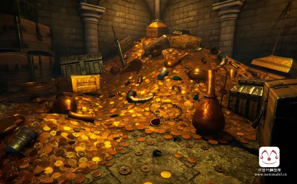 金库宝藏道具包包含五个不同的宝箱,少量的金币堆(包括无缝金币材料),以及许多金色的小道具。可以用来丰富你的冒险探宝游戏。