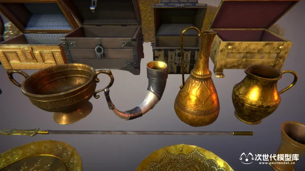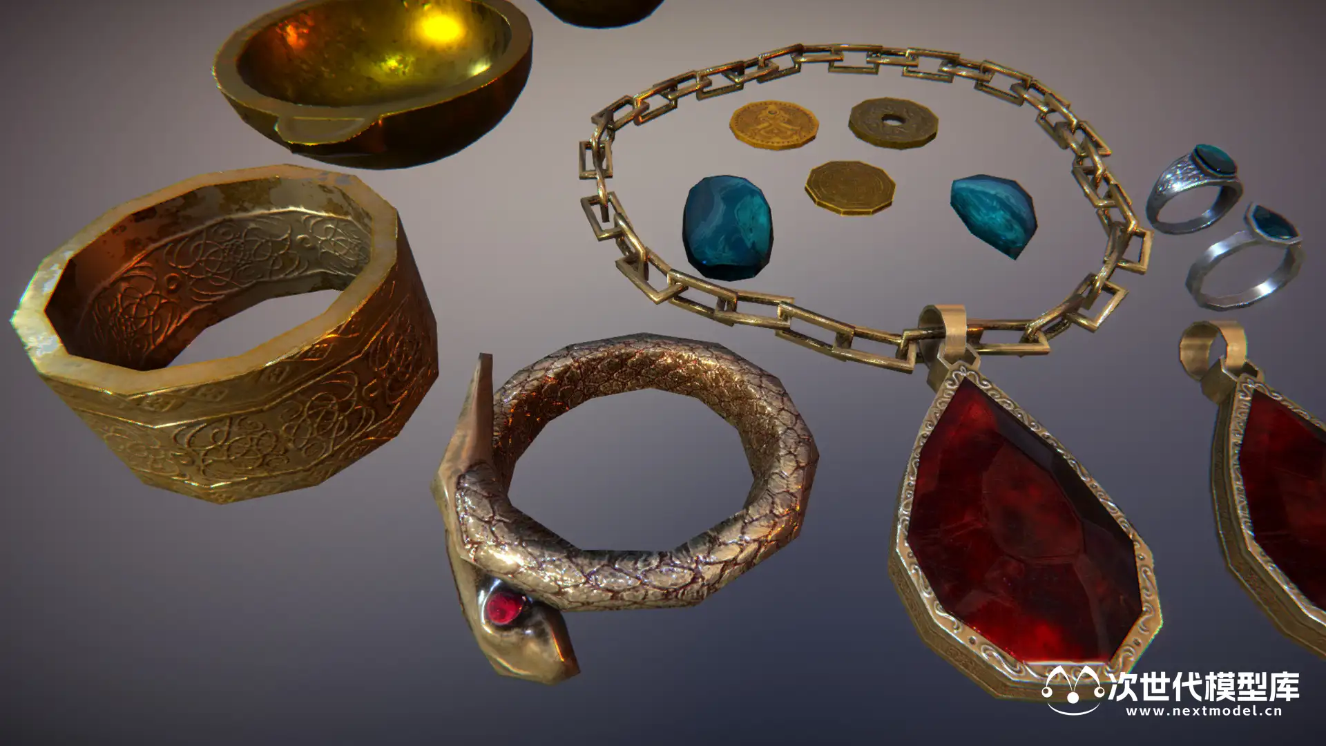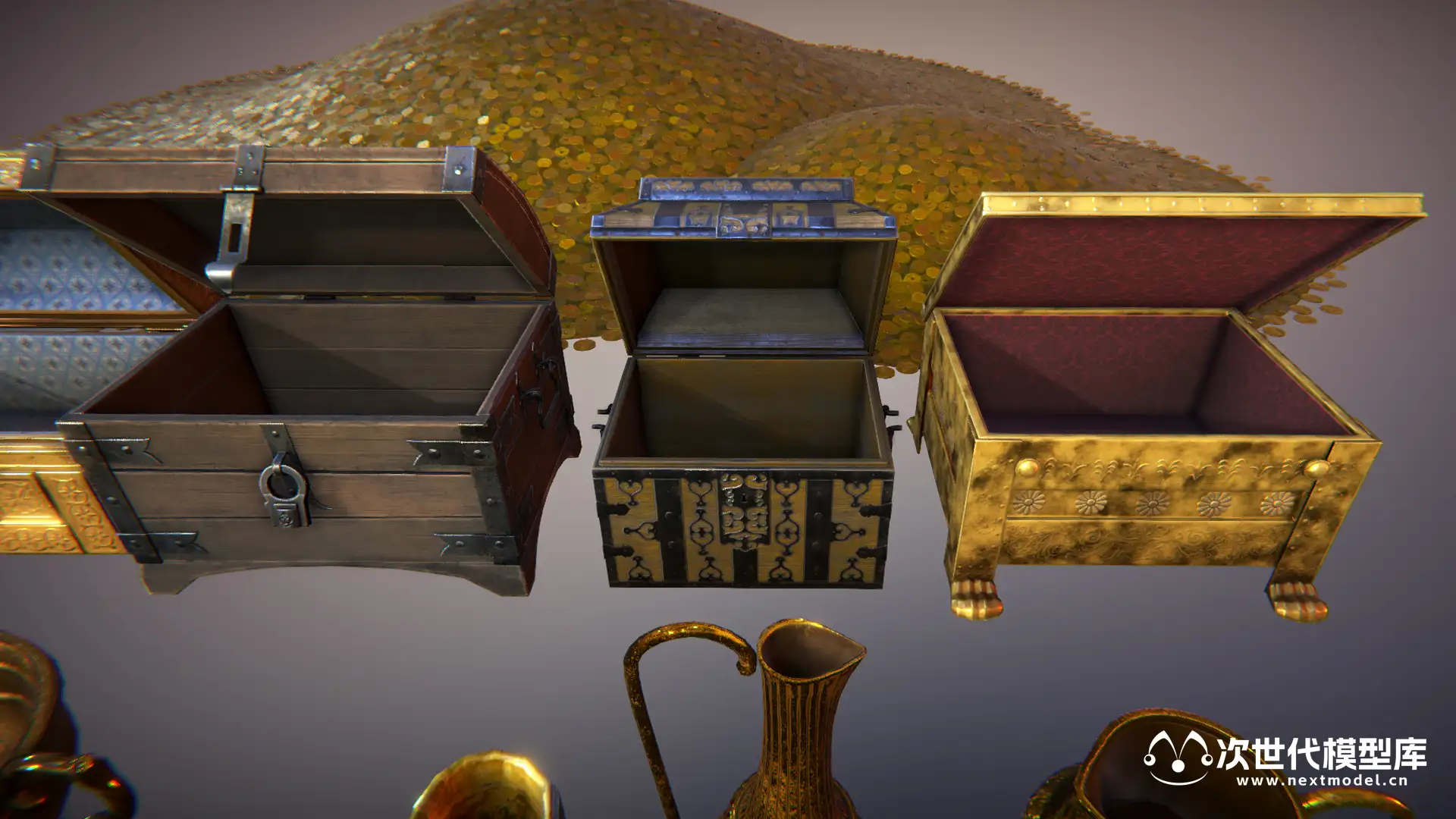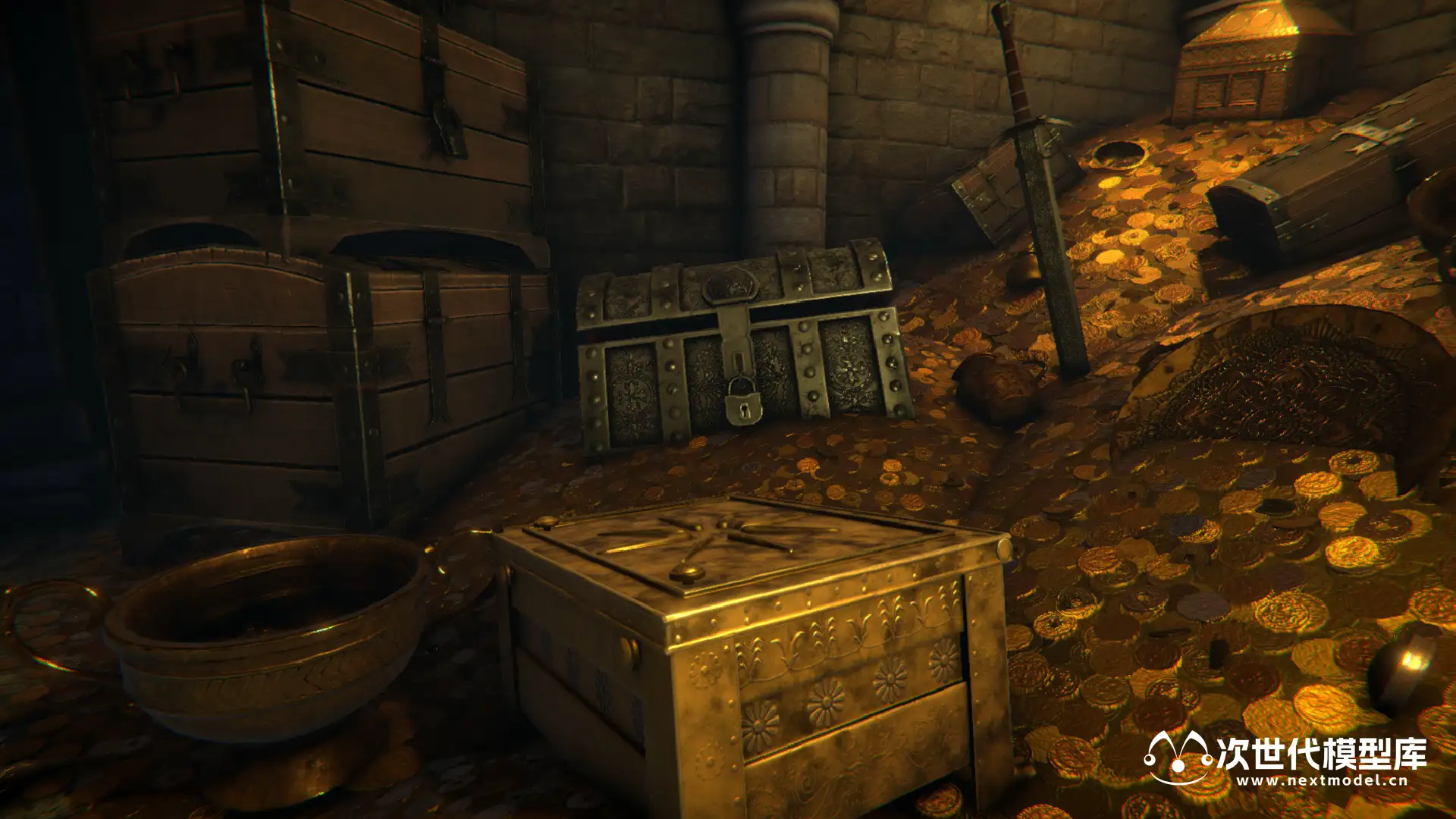 金库宝藏道具包包含五个不同的宝箱,少量的金币堆(包括无缝金币材料),以及许多金色的小道具。可以用来丰富你的冒险探宝游戏。
