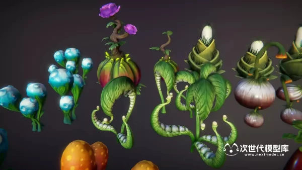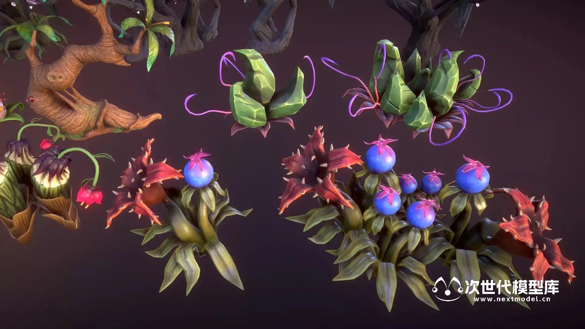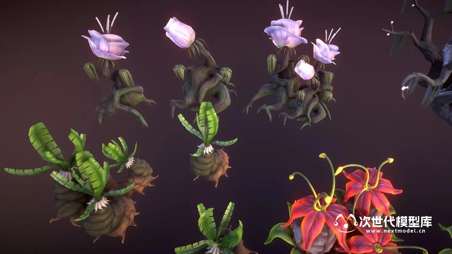 9种用于奇幻游戏开发形态各异的植被花卉3d模型,植被不仅拥有超高品质,同时使用了顶点动画,支持通过着色器模拟风的动画效果。