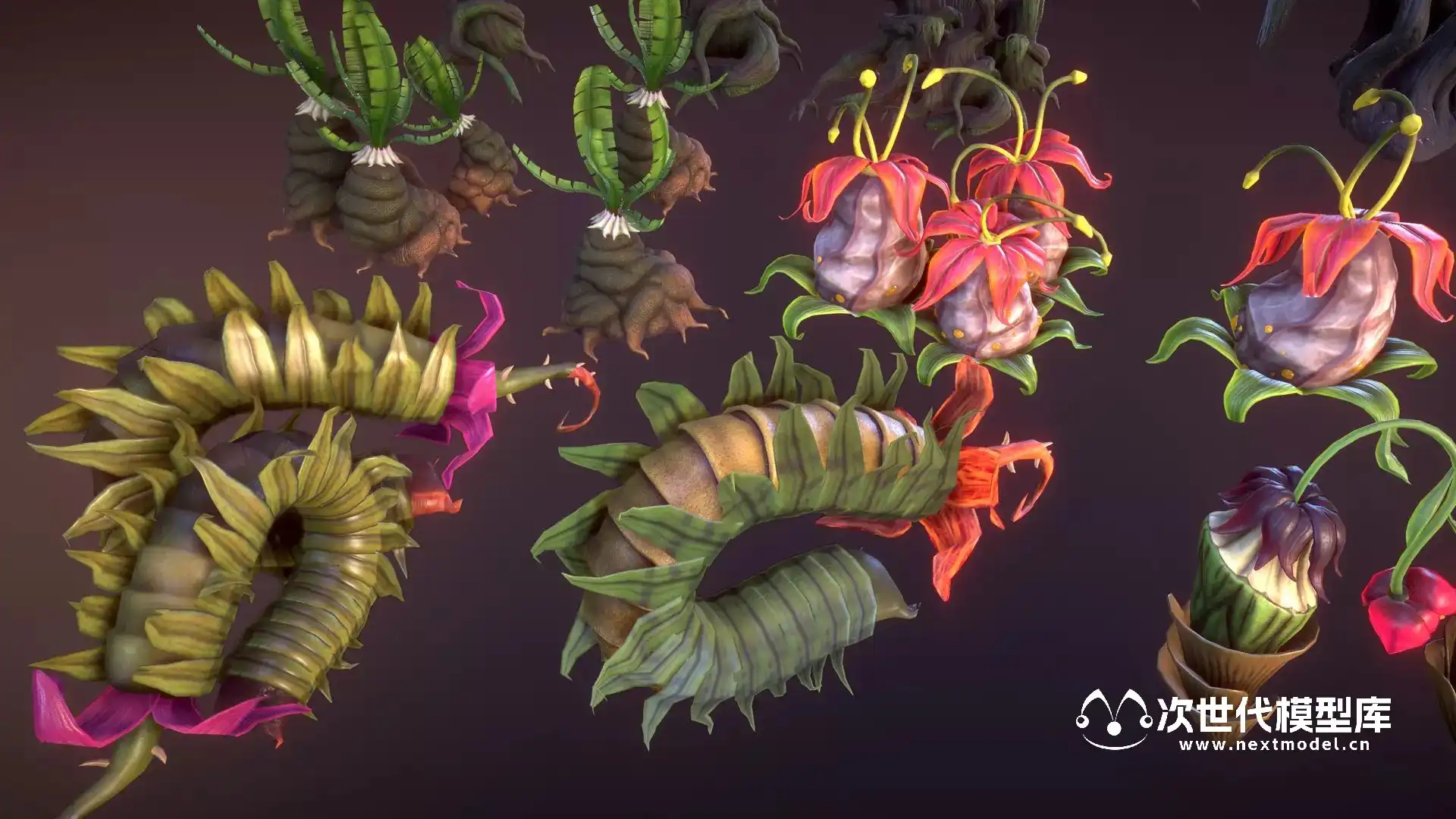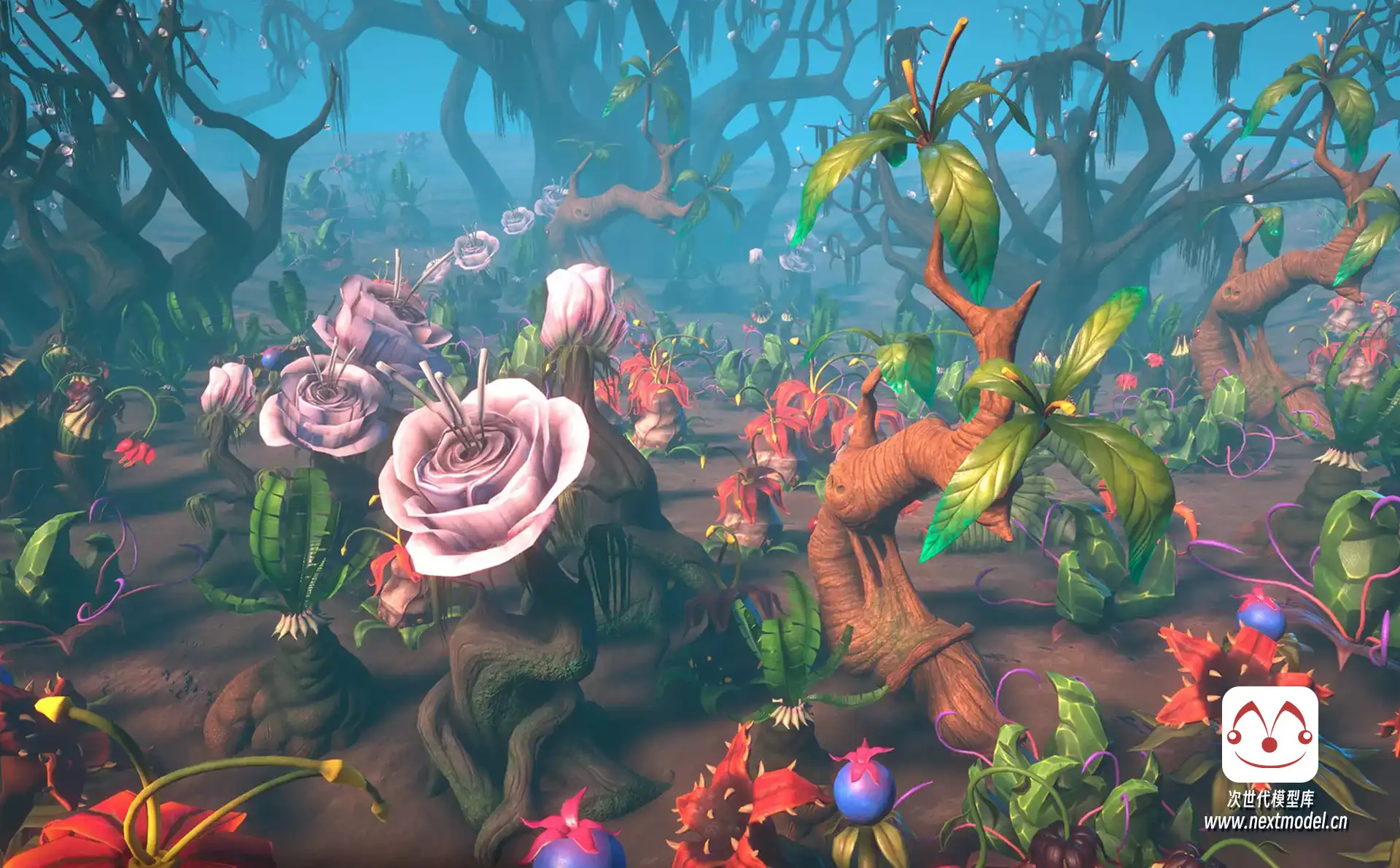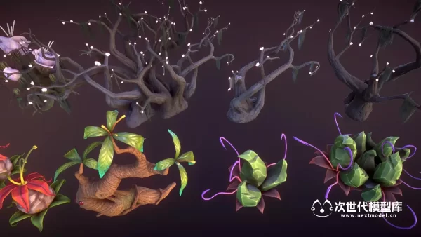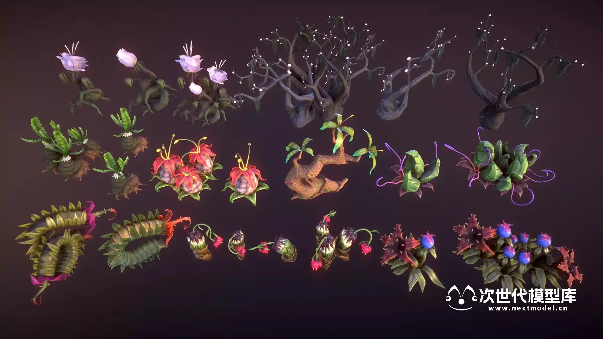 9种用于奇幻游戏开发形态各异的植被花卉3d模型,植被不仅拥有超高品质,同时使用了顶点动画,支持通过着色器模拟风的动画效果。