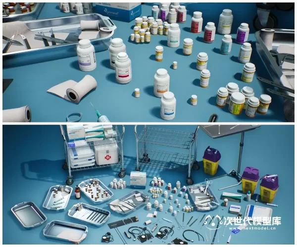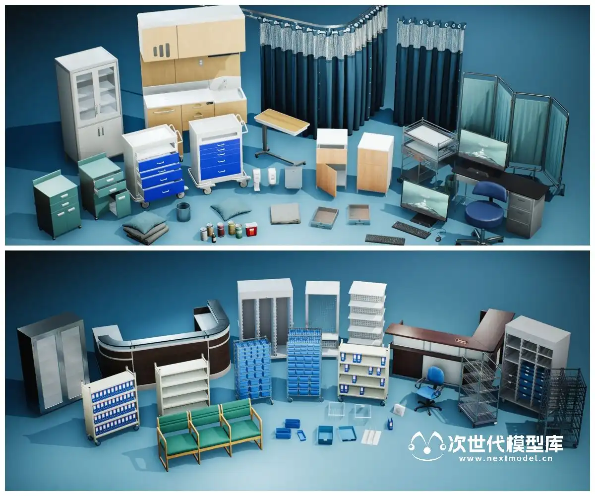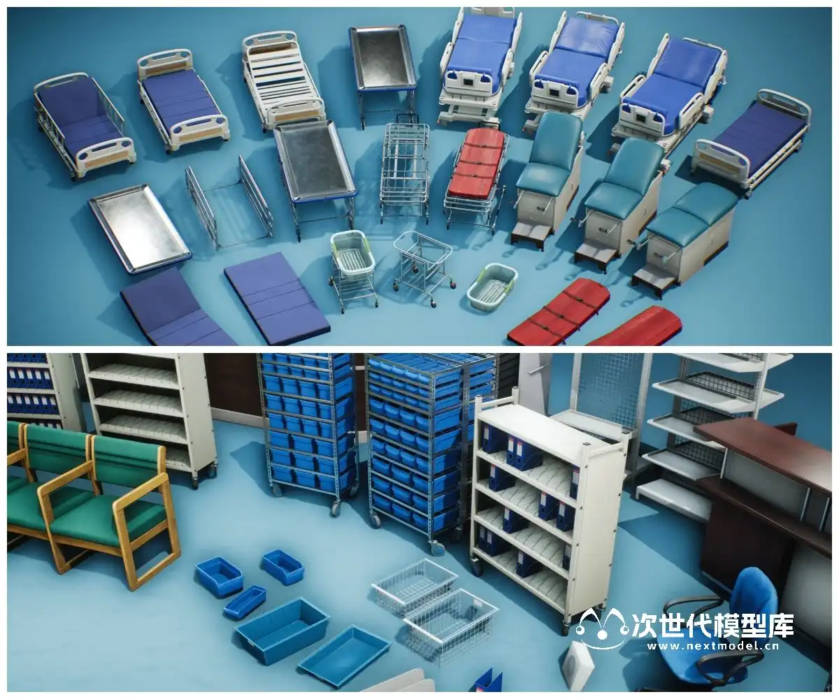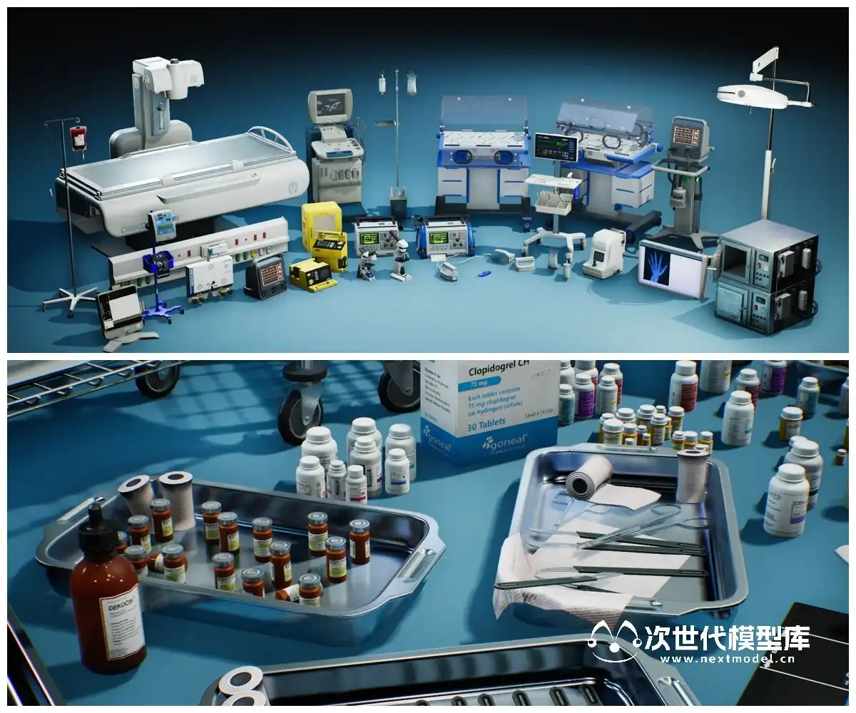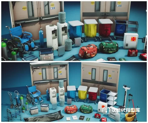 AAA级品质的现代医院医疗器械工具道具模型资产合集包,合集包括了6个模型合集包。每个资产都拥有AAA级品质视觉效果。超写实风格,纹理品质高达2048*2048.材质纹理包含:Roughness、