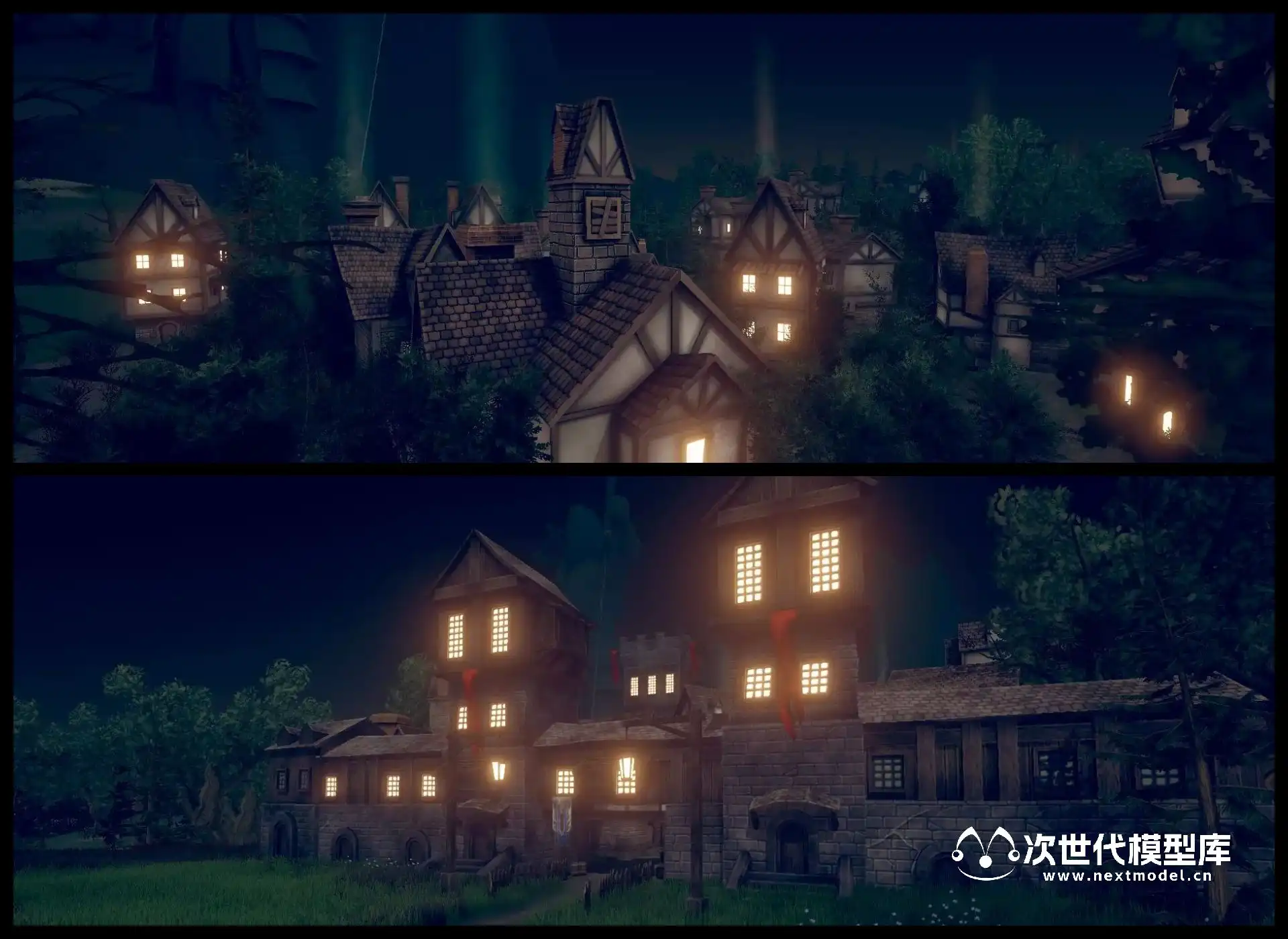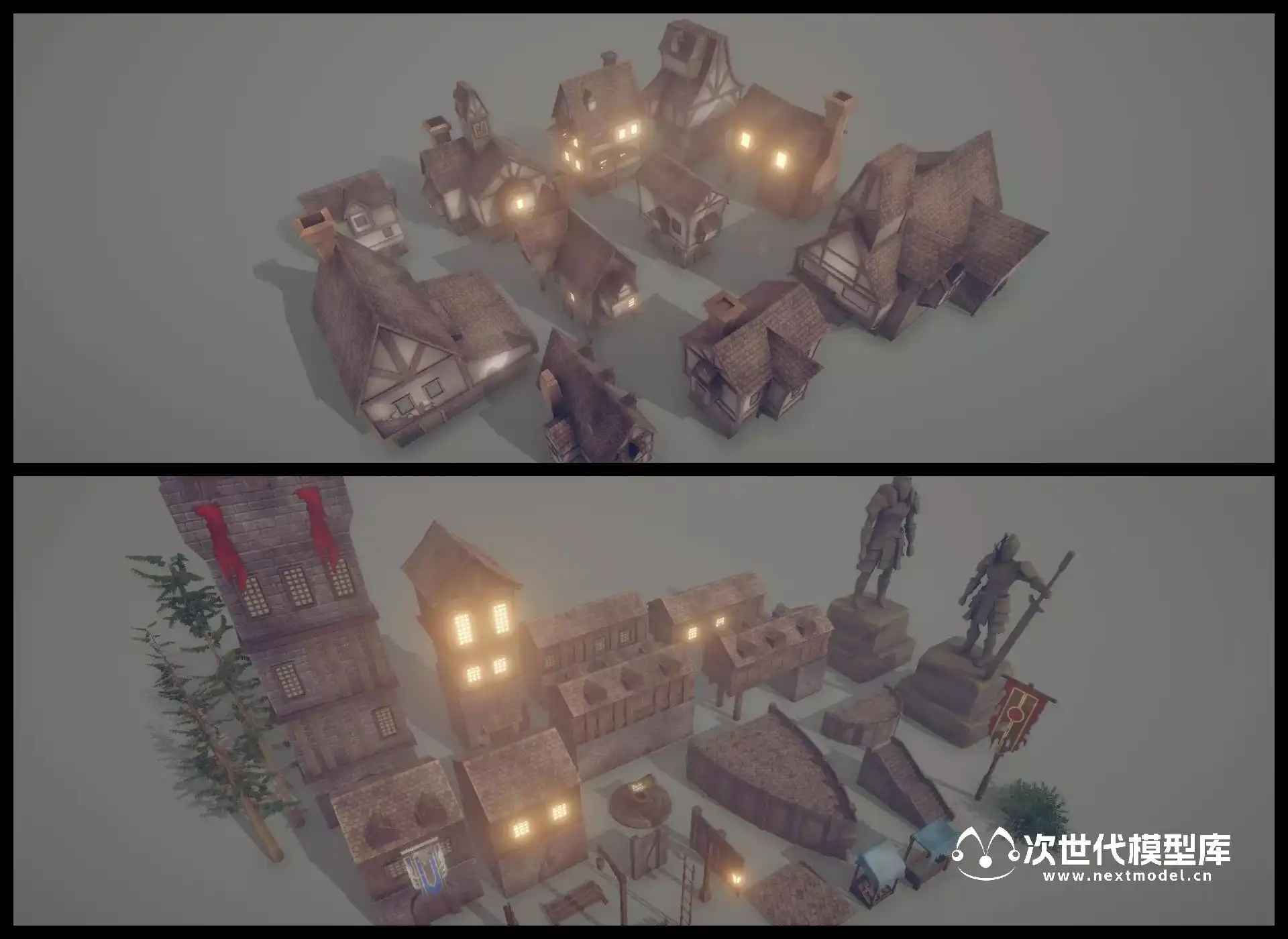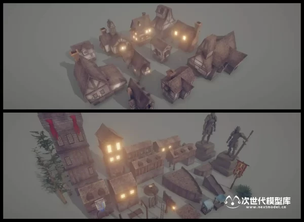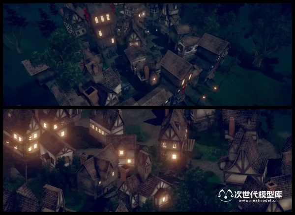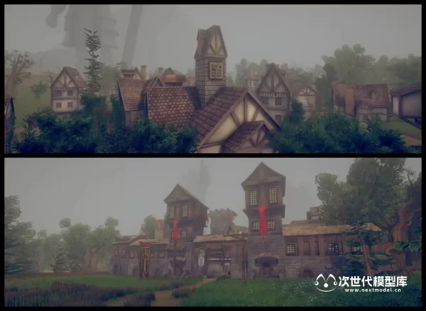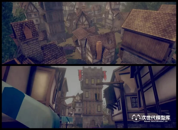 用于开发奇幻游戏的史诗级中世纪环境场景泰坦镇(Titan Town),场景模型纹理采用手绘绘制。