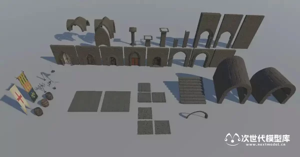 高品质的模块化地牢模型,提供快捷的个性化场景定制工具。以包括PBR金属度纹理,适用于游戏场景的快速美化和定制。为游戏开发者提供了快速创建个性化地牢的便利。资产包括:模块化建筑、装饰、吊灯、烛台、酒桶、旗帜等元素;