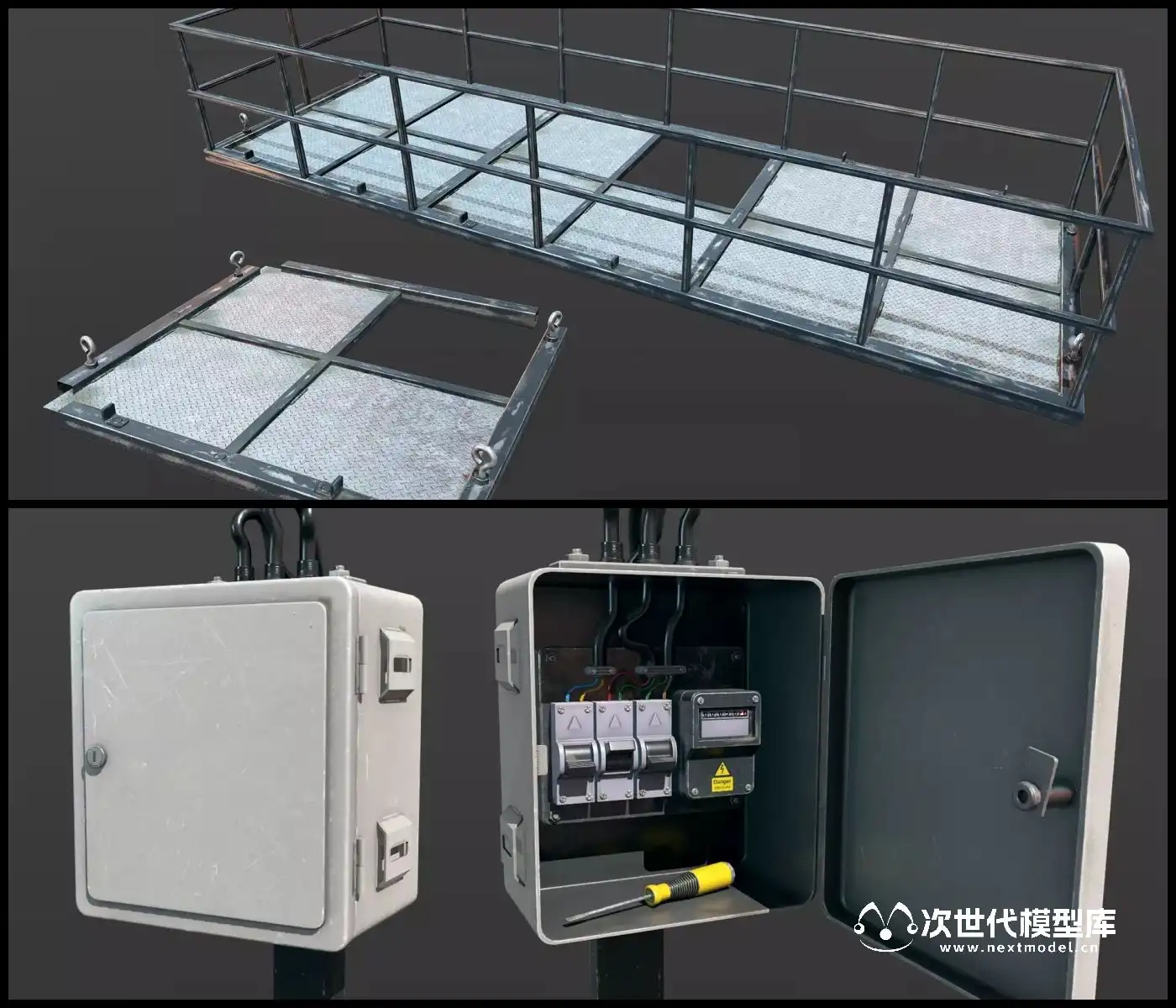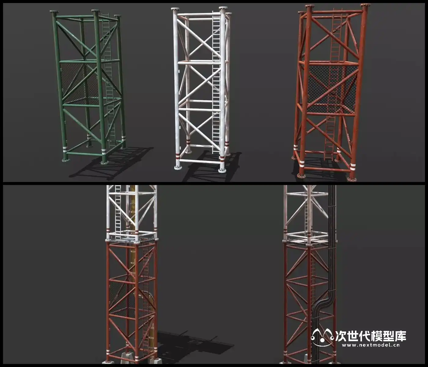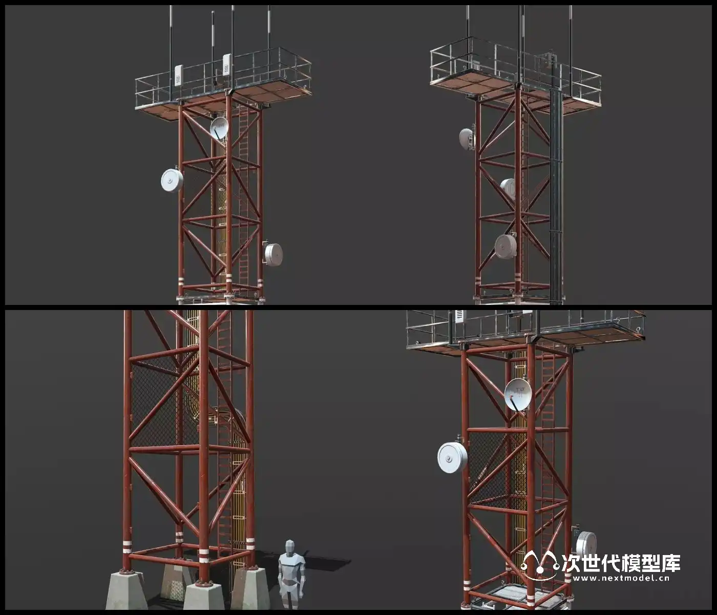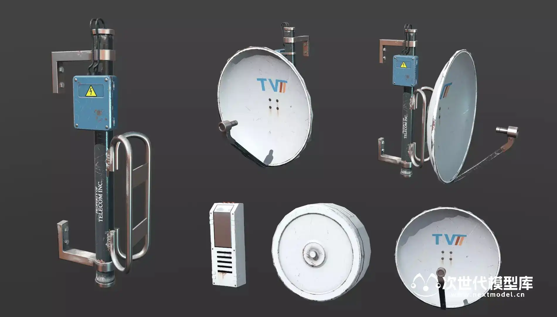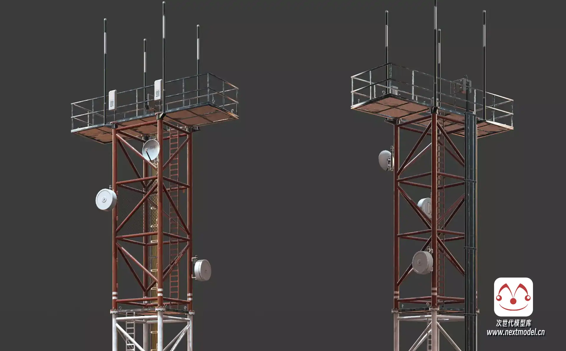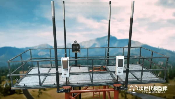 该广播塔由5个部分组成:塔身(三种外观)、电缆、中间平台、顶部平台和电箱。此外,您还将获得外观引人注目的模块化天线组和可交互的电箱(开关、门、螺丝刀)。包含了钢缆等细节。