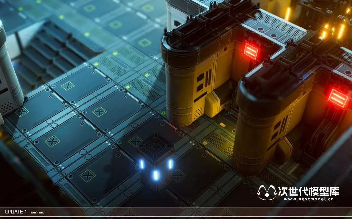 科幻俯视视角塔防游戏开发所需的场景模型资源包含了116个模块化的预制件,例如墙壁、角落、地板、柱子、灯、装饰物等等。每个预制件都采用了2048×2048的高质量纹理,包括漫反射、镜面反射、高度贴图和法线贴图,无论是细节还是整体都充满了科幻感。