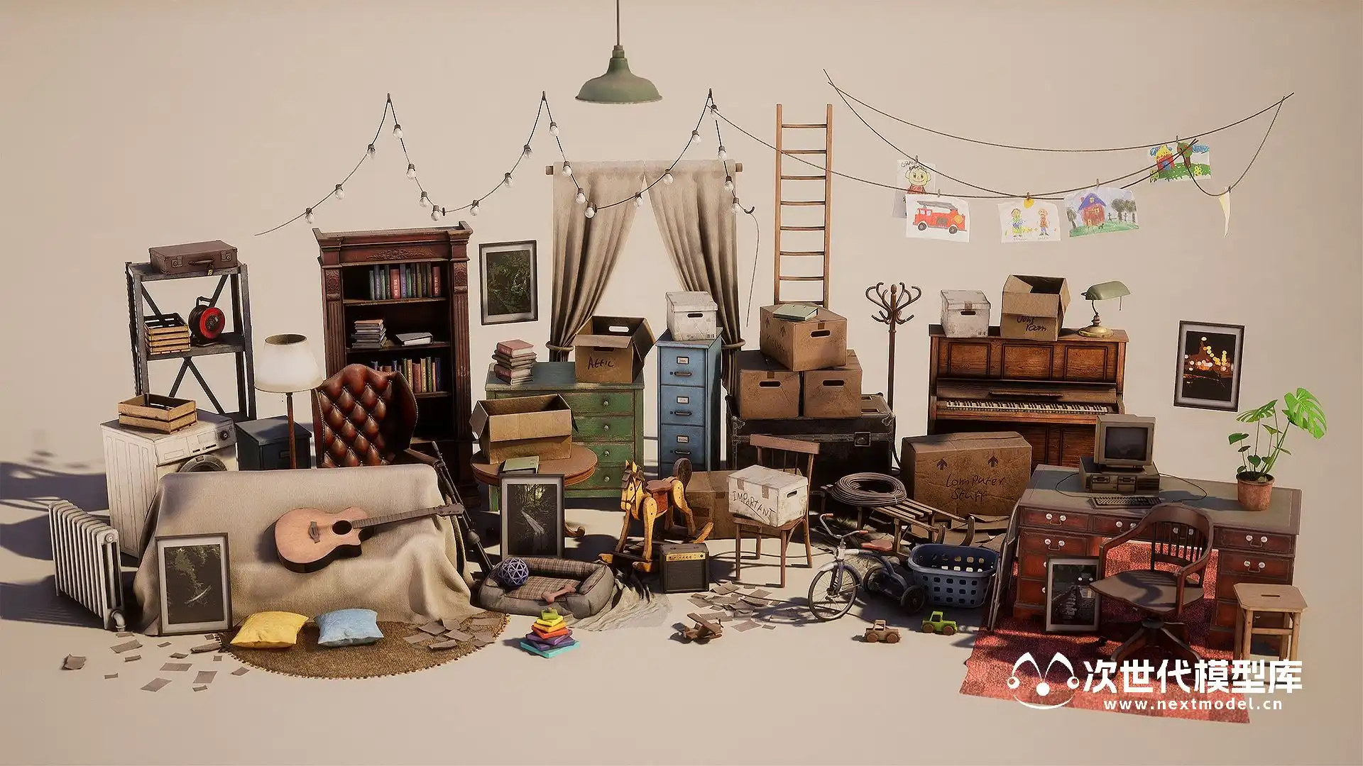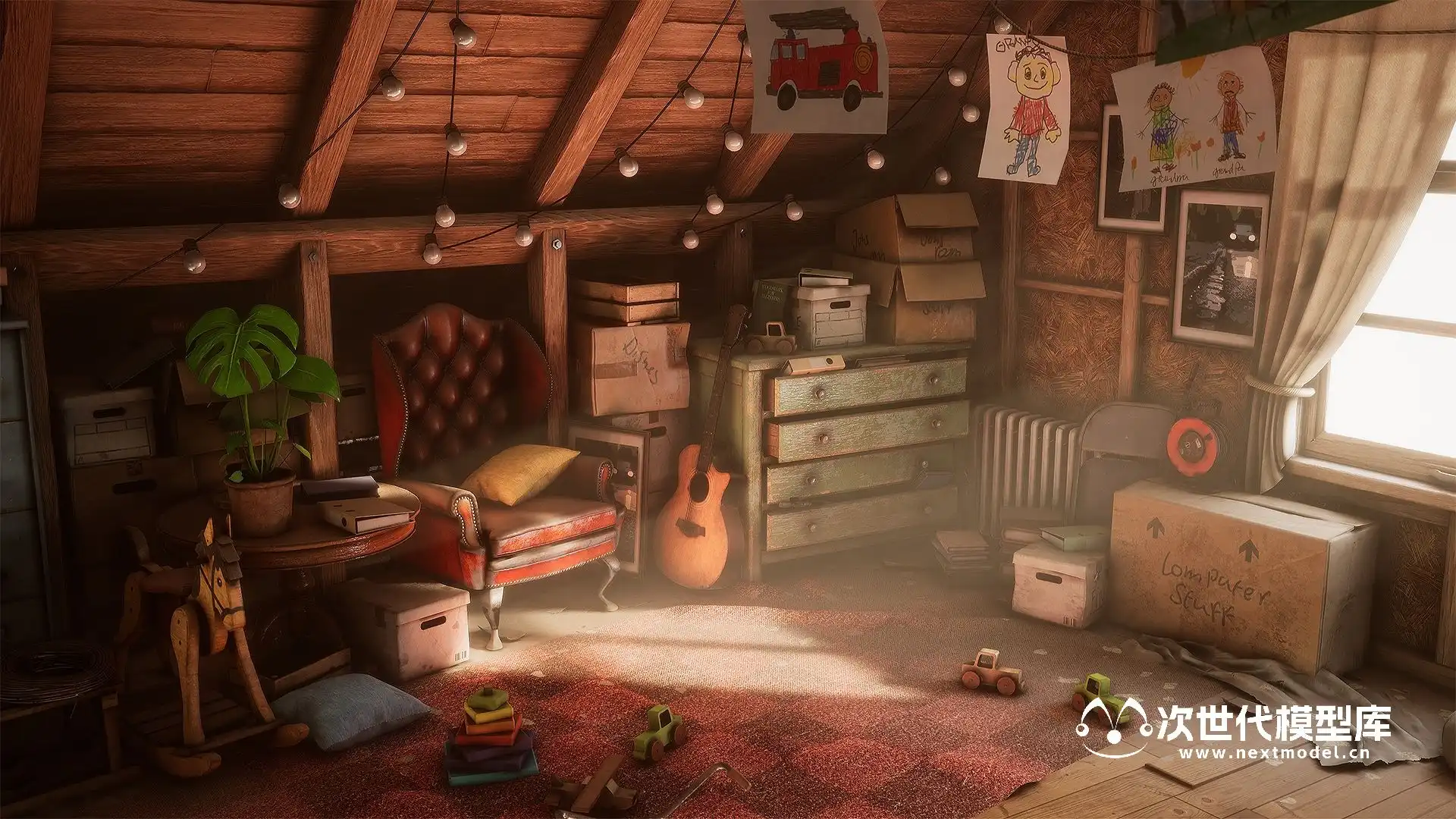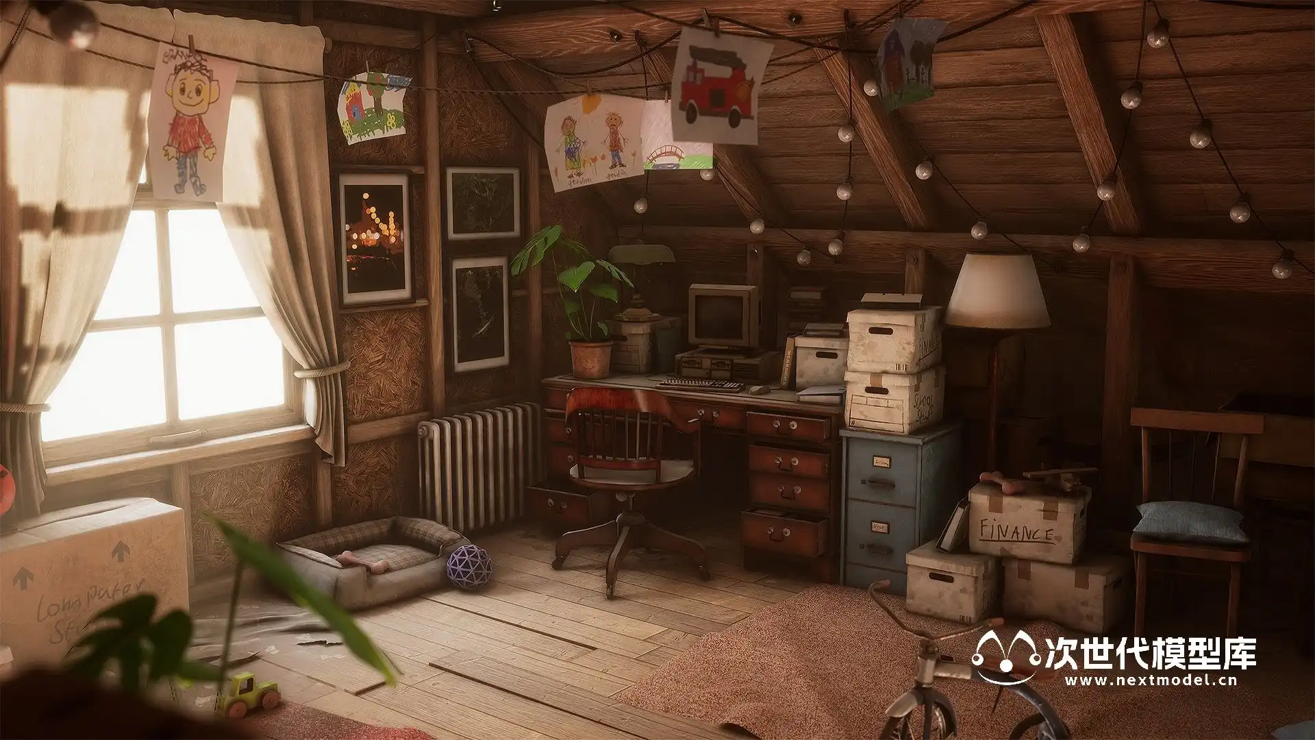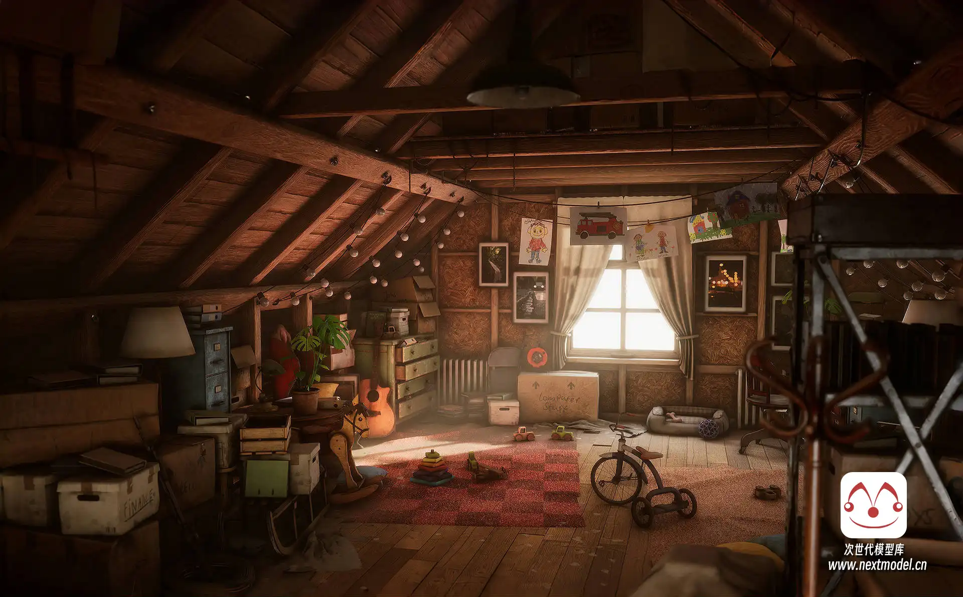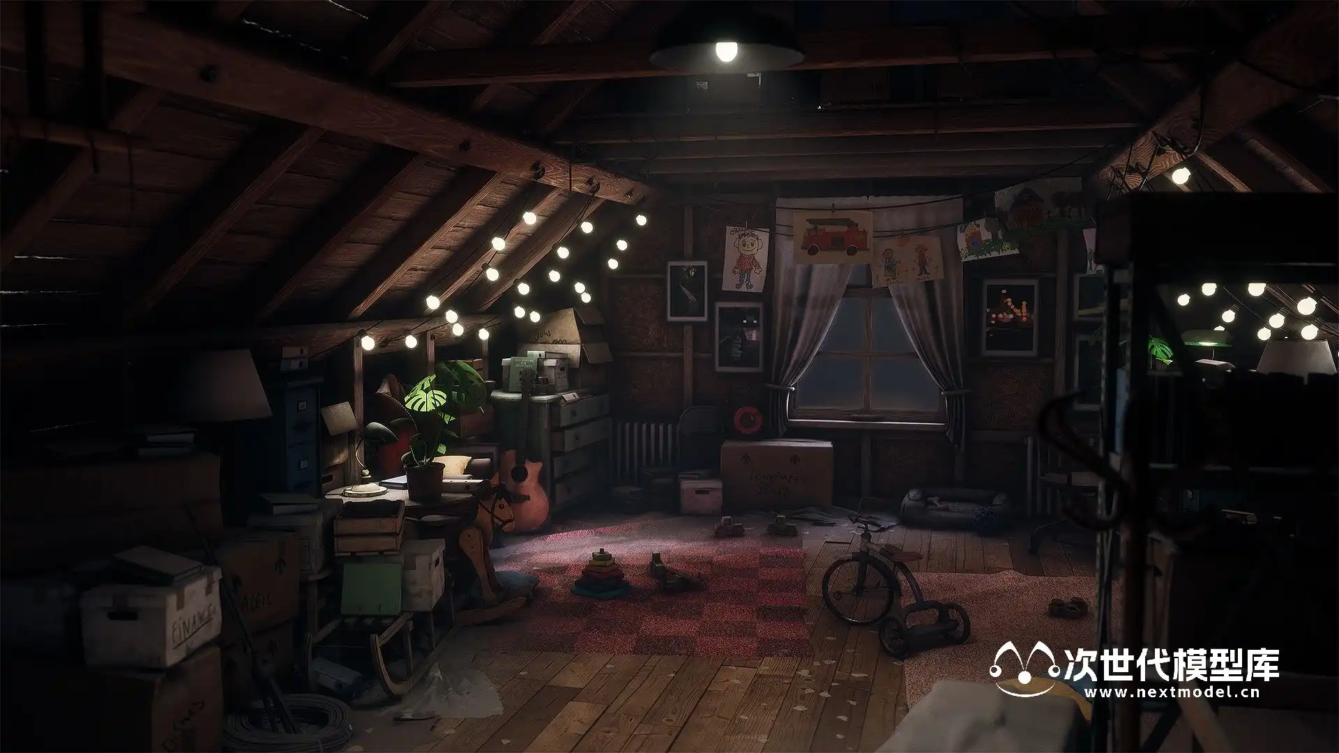 专为各种场景设计的阁楼和存储道具集合。每个资产都以AAA级逼真的艺术风格创建,风格和预算都经过精心设计。这个包不仅适合您的下一个游戏项目,也适合照明研究或仅仅是为了了解如何设置这样的场景。包含6个完全可自定义的主材质,以及调整粗糙度值、平铺和灰尘量的选项。所有网格都包含光照贴图,并且道具有发光纹理,用于照明效果。这个包包含3张地图:Grandpas_Attic, Grandpas_Attic_Night和Grandpas_Attic_Props。请注意,这个包不是模块化的,并且使用了烘焙光照。技术细节显示,包含111个独特的网格,所有资产都有生成的碰撞,顶点计数为225,608个三角形,共有72种材质和200种纹理,纹理分辨率从512~4096。