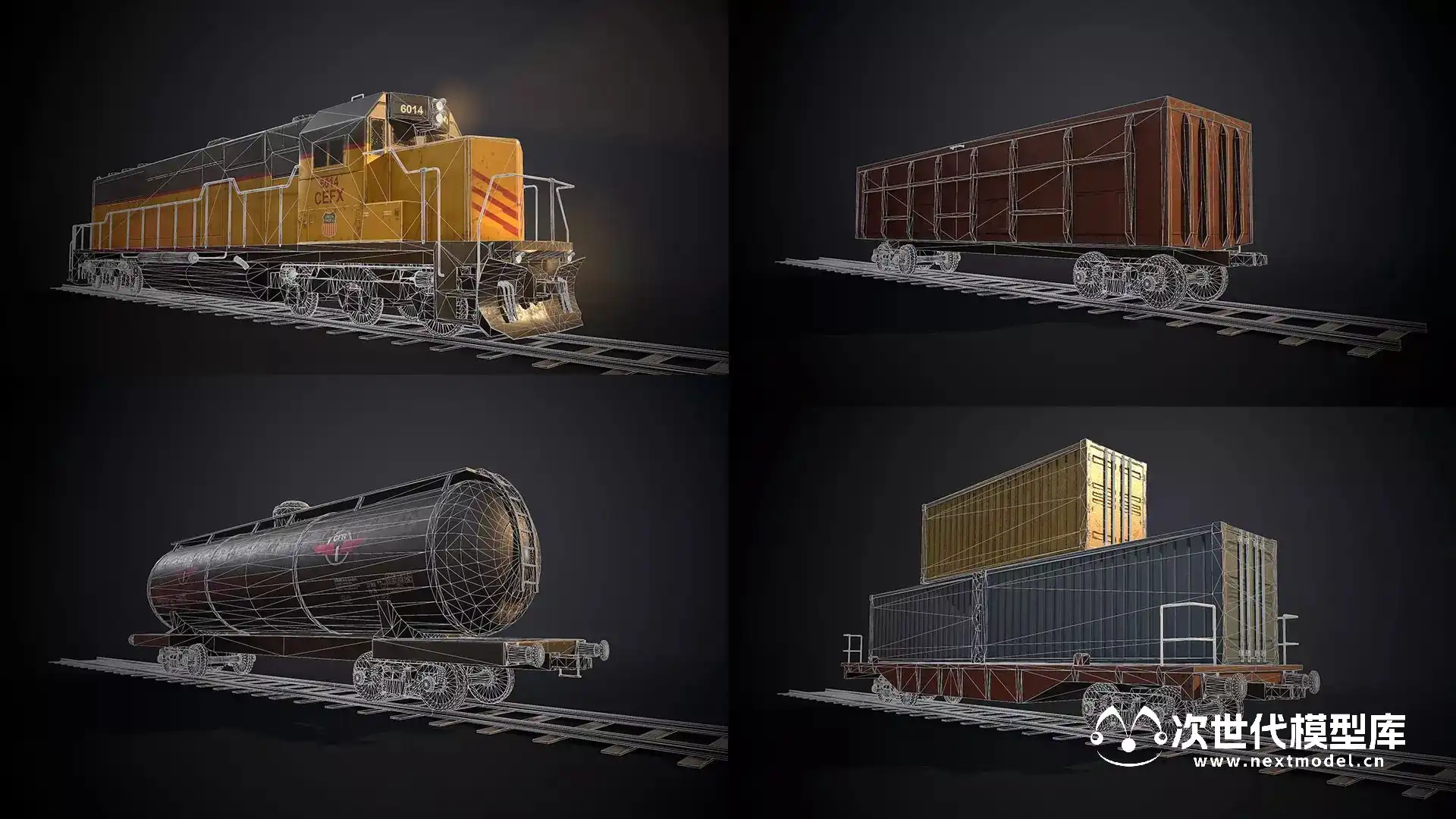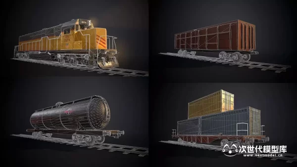 - 四节火车车厢(Train carts/wagons):每节车厢约9,000至12,000个多边形。
