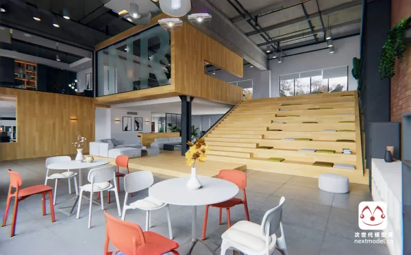 互动建筑可视化咖啡馆\餐厅场景3D模型