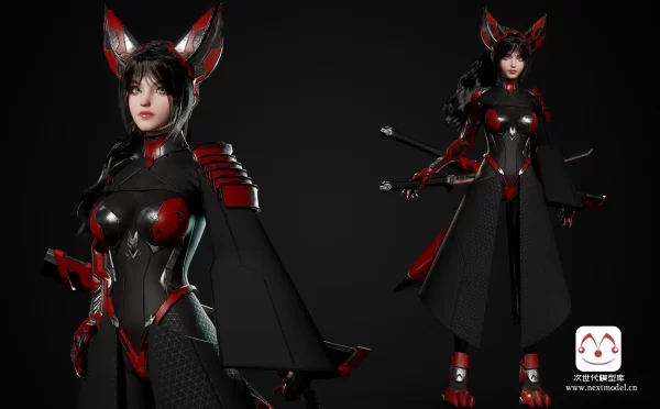 AAA级摩登科幻狐女武士游戏角色模型