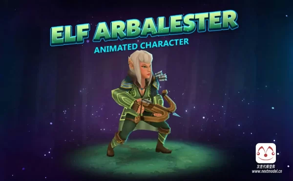 奇幻游戏卡通风格精灵弩手3D模型带动画