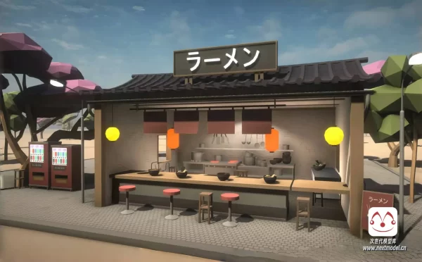 幻想Low Poly森林小镇村庄小屋游戏场景
