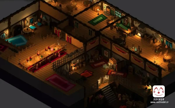 低多边形卡通风格中世纪室内模型