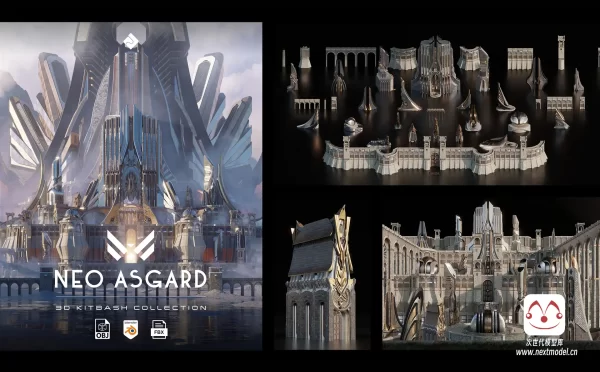 Neo Asgard北欧幻想风格建筑3D模型包-Blender+FBX+OBJ格式