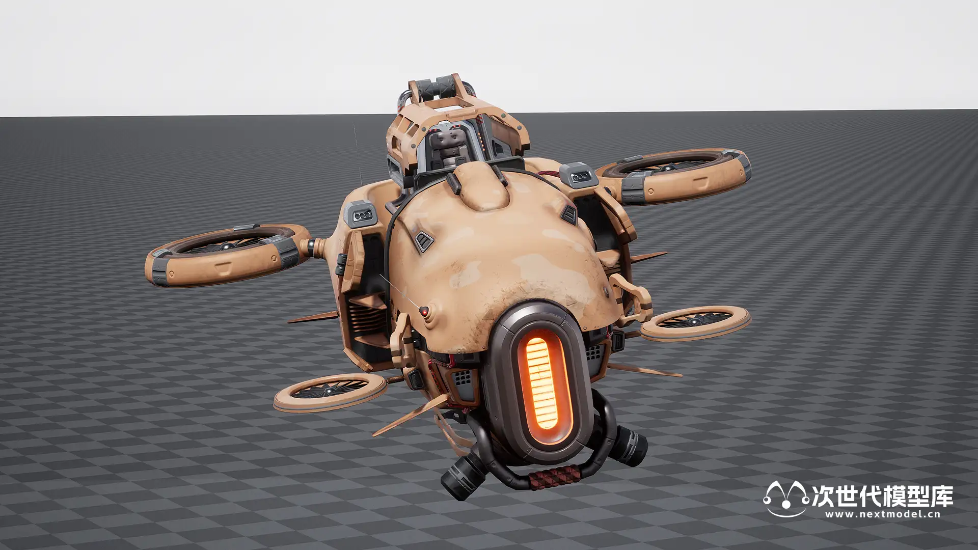这个高度详细的资产是专门为科幻环境量身定制的,作为玩家可驾驶的车辆或敌人(缩放到史诗般的人体模型)。附带快速启动蓝图结构,以展示动画如何协同工作。请注意,它不是一个功能齐全的飞行系统。纹理贴图包括基颜色、法线、自发光、压缩 AO、粗糙度、金属度和不透明度贴图。