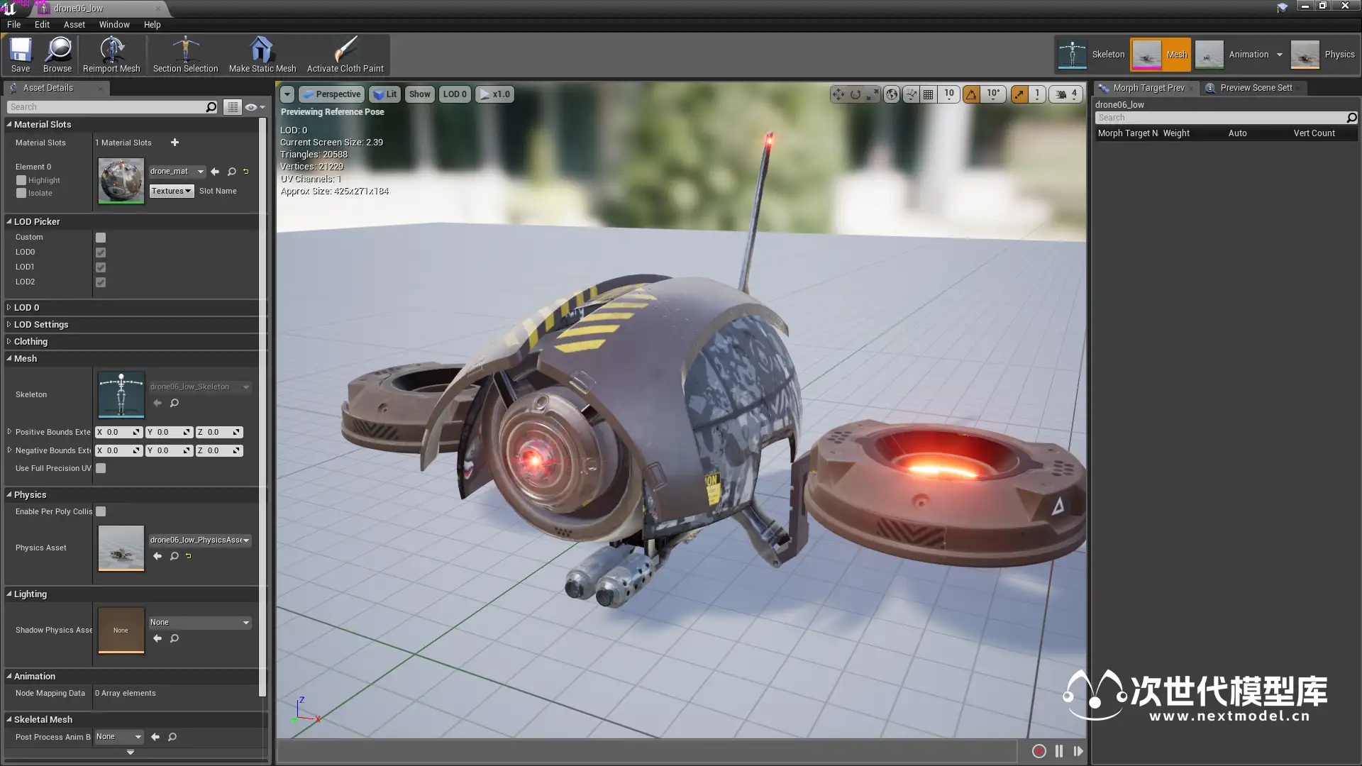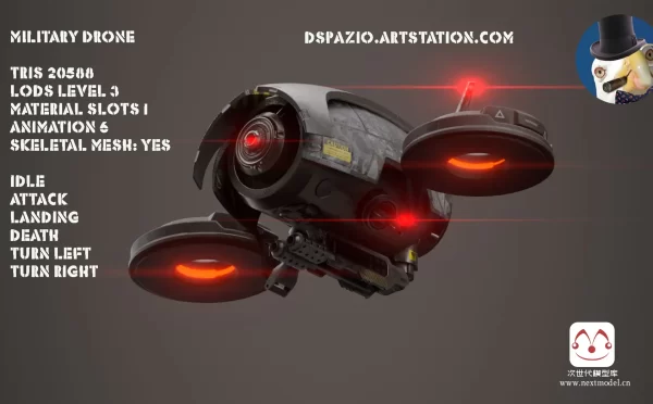 军用无人机角色,具有 6 个动画、3 个 LOD 级别,已装配。这个角色是专门为科幻、黑暗环境或近期的军事支持而设计的。它带有 6 个基本动画、PBR 材质、4K纹理材质。 技术参数: 资产体积:39MB 缩放至史诗骨架:是 操纵:是的 装配到史诗骨架:否 动画:是的 网格数量:1 LOD:是 模型面数:20588 纹理分辨率:4096 动画数量:6 资源格式:UE资源包 支持UE版本:4.18 - 4.27, 5.0 - 5.2