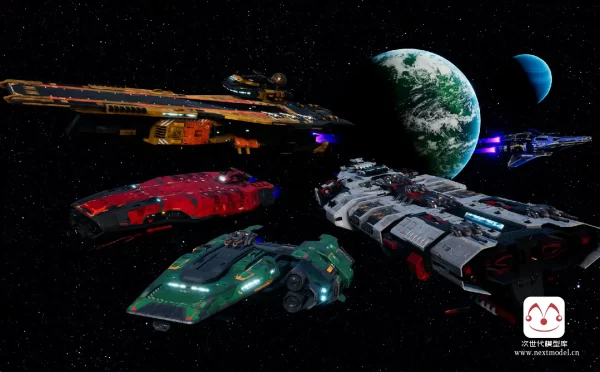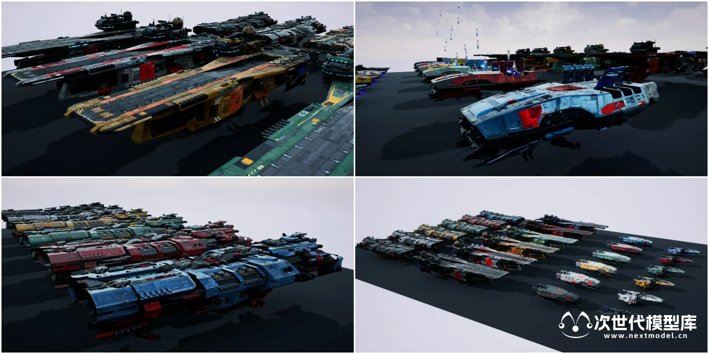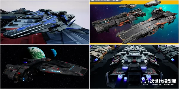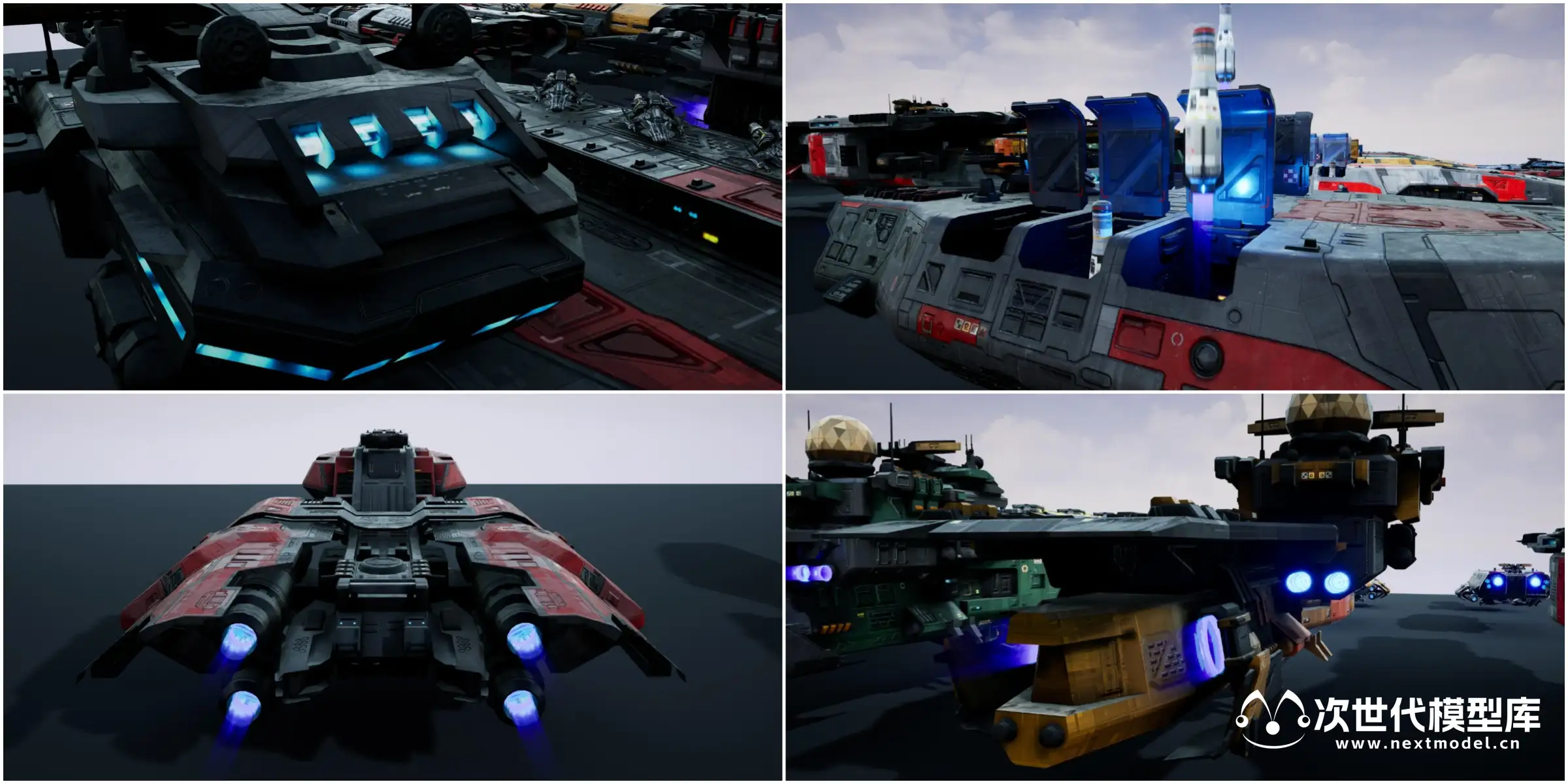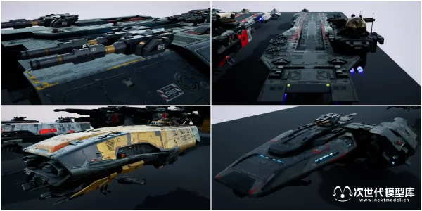 低多边形宇宙飞船模型包01套装包括一艘指挥舰、一艘无畏舰、一艘核弹护卫舰和一艘带有战斗机的超级航母。该套装专为团队设计,每艘船有 5 种颜色:黑色、白色、红色、蓝色、黄色和绿色。材质经过精心设计,可实现最大程度的可定制性,包括细节法线贴图、粗糙度贴图、发光照明烘焙和彩色纹理变化。