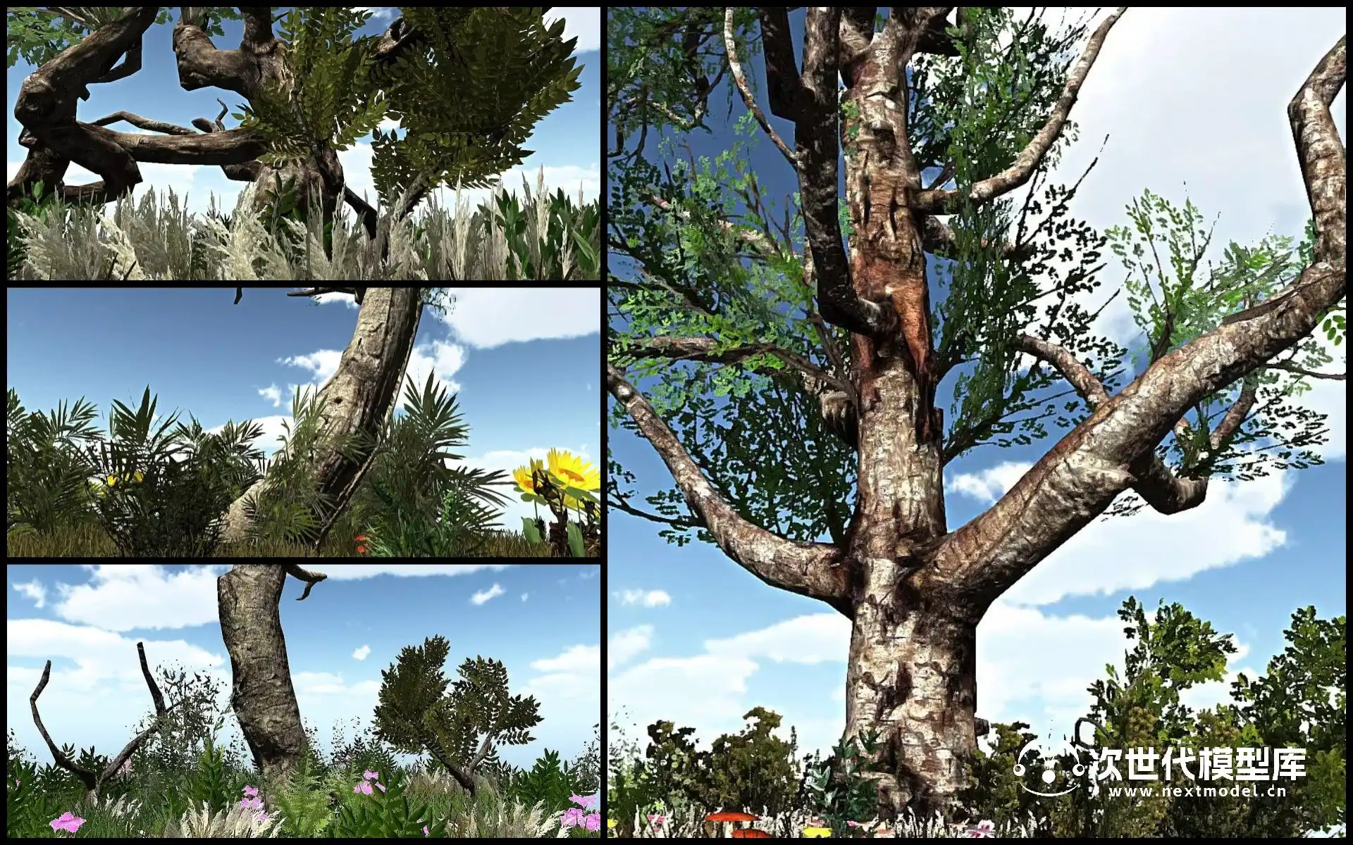 Woodland建模套装是建造AAA级品质森林自然场景的一套完整的模型资源,包括根据古老森林真实形态建模的10棵树木以及丰富的植被。