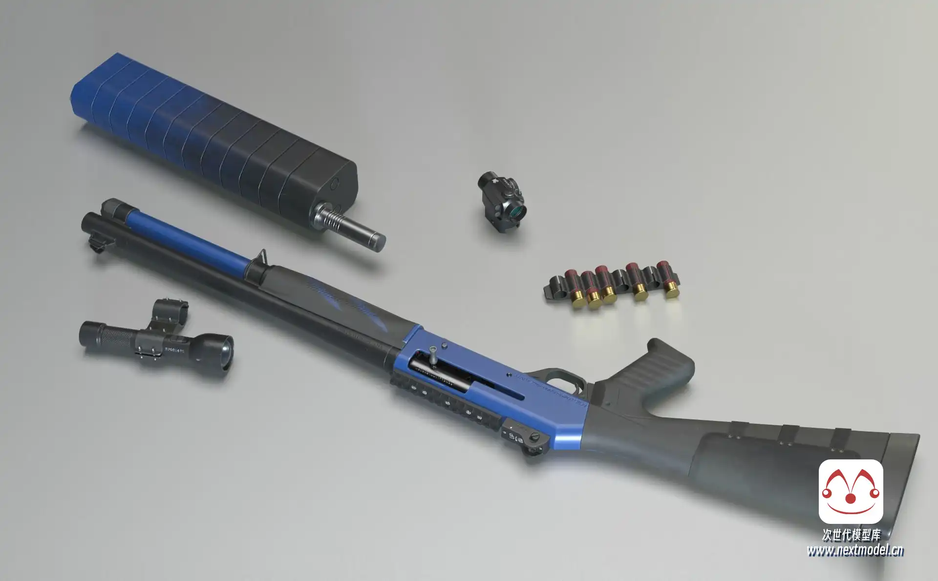 - 模型资产:手电筒、瞄准镜、霰弹枪、弹药、消音器、枪托。