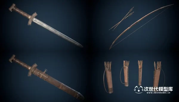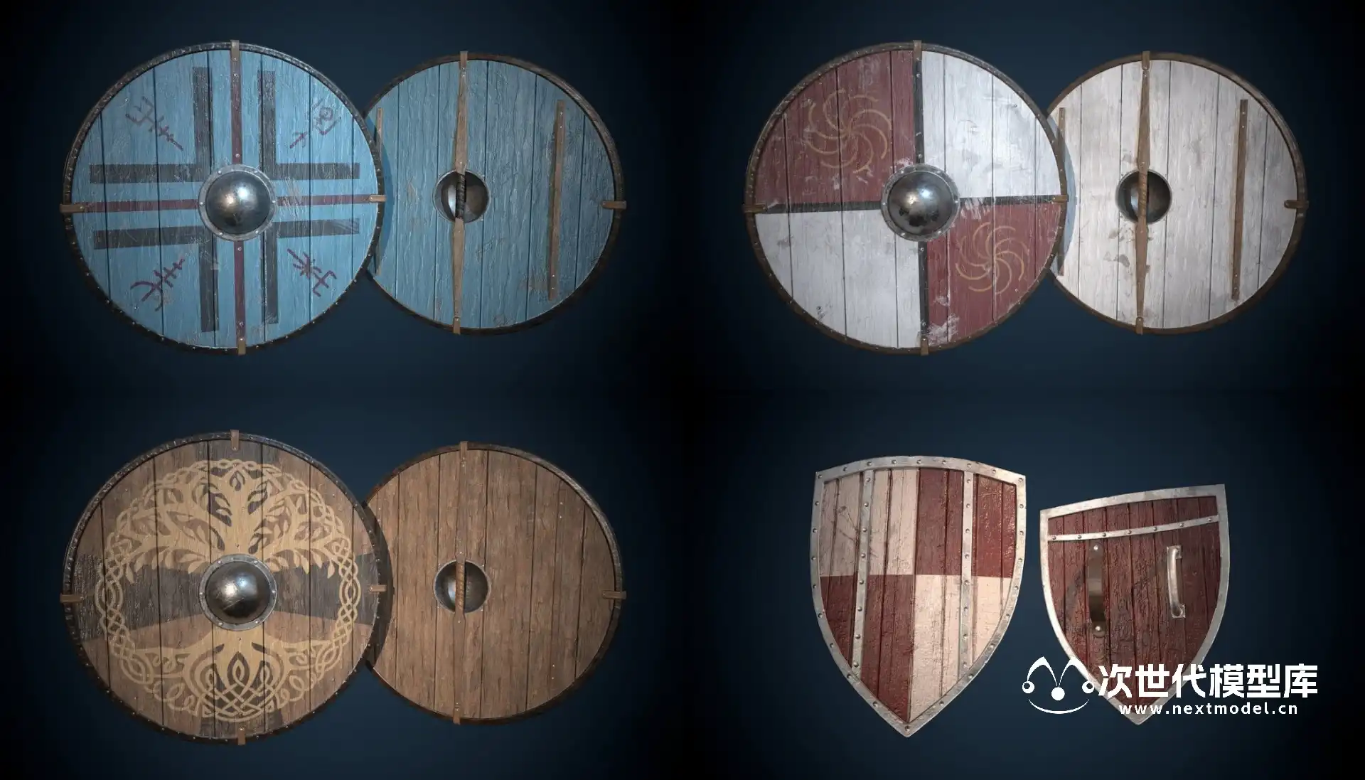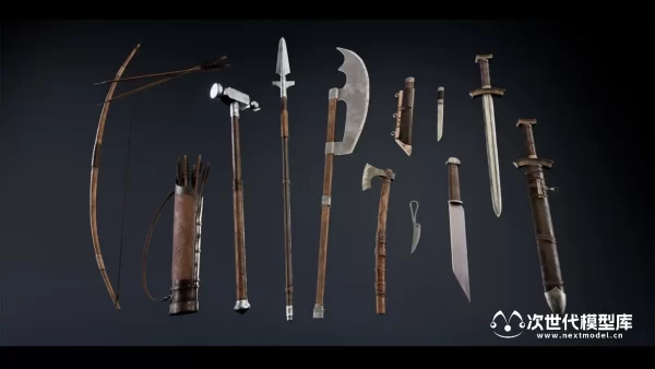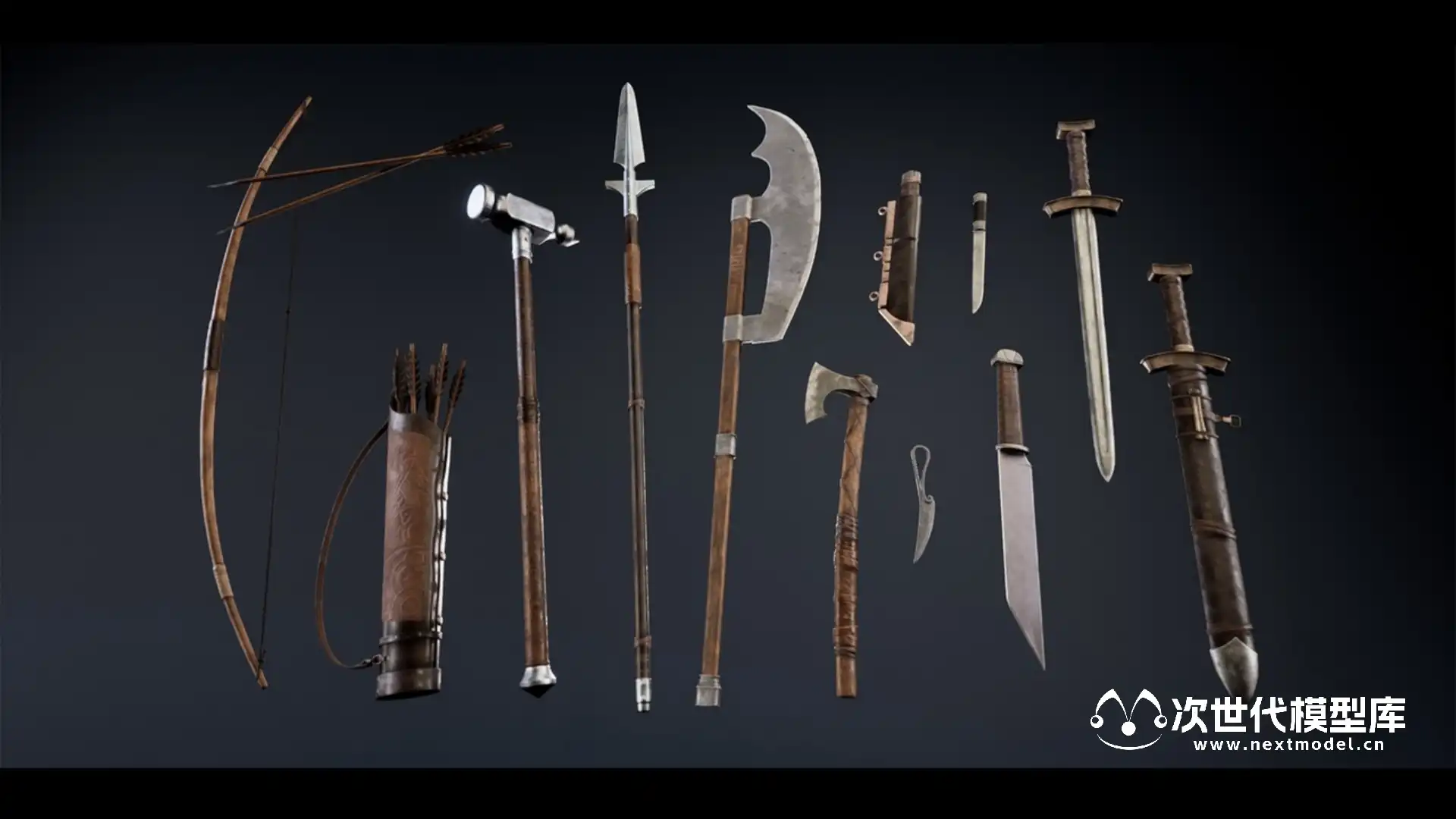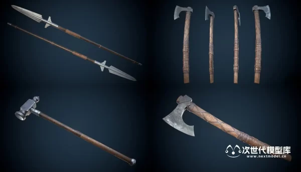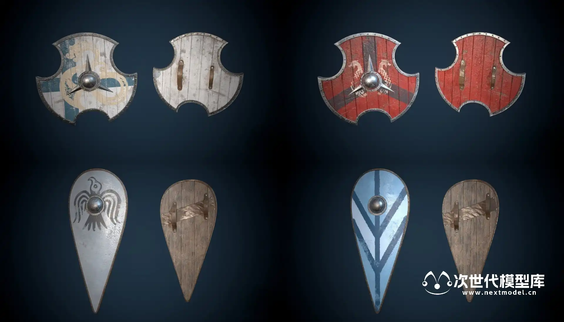 - 18件中世纪/维京武器和盾牌,每个盾牌有3种材质变化。