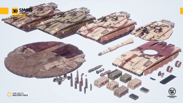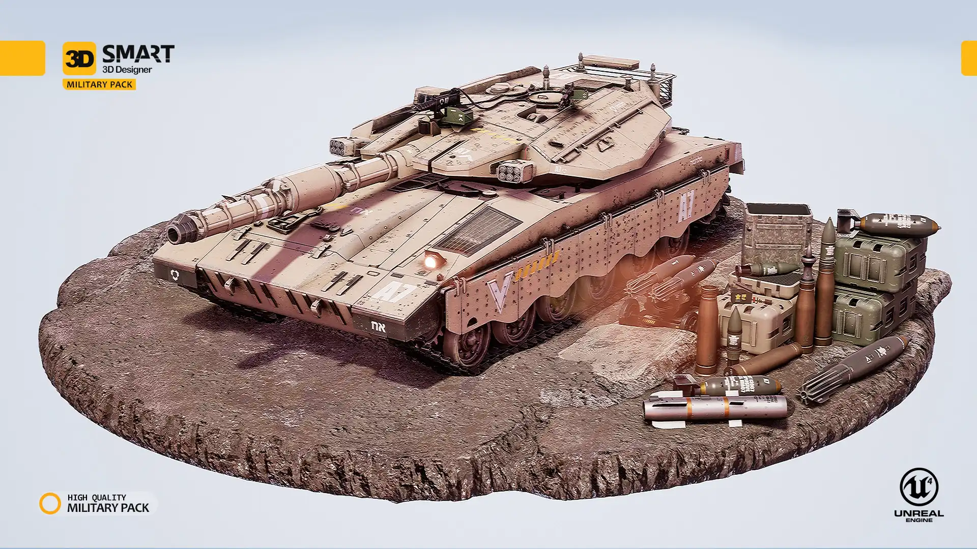 一款AAA级品质以色列梅卡瓦主战坦克模型包。此套装包括一个全套战斗坦克系统,拥有三套不同颜色战斗外观包括沙漠、沙漠迷彩、绿色迷彩等。坦克是模块化设计,可以根据实际情况进行自定义,此外模型还包括各种不同战斗使用弹药。