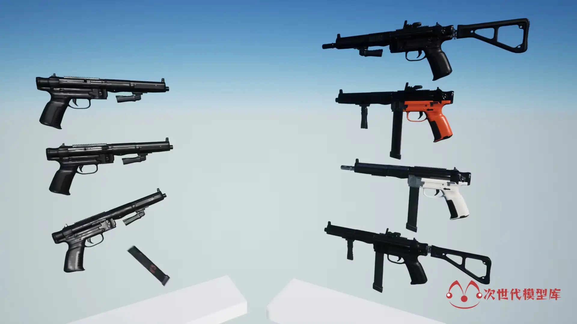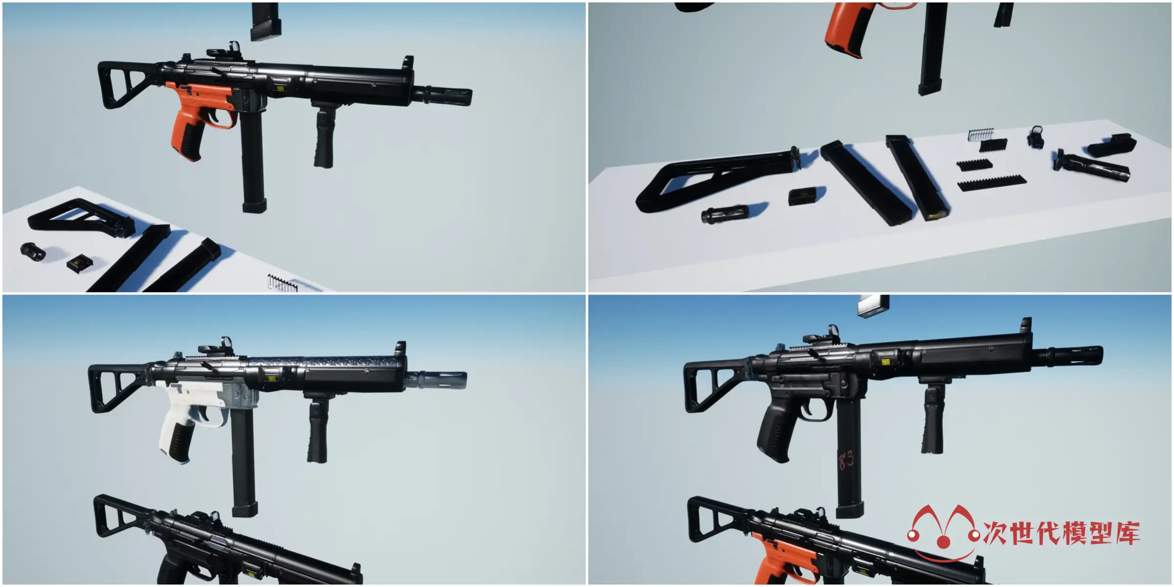 SMG游牧者全自动冲锋枪模型包具有不同的皮肤和完全可操作的部件,如扳机、充电手柄和安全杆。该资源包括三种配色方案:黑色、橙色/黑色、带雕刻的银色。此外,附件允许您创建武器的不同变体。 技术参数: 资产体积:208MB蓝图: